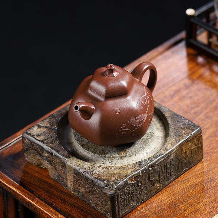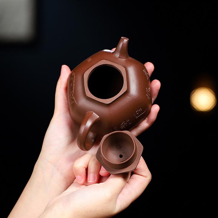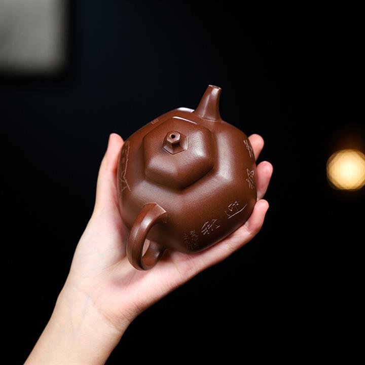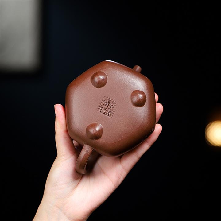原礦紫泥六方三足乳釘紫砂壺POT5371