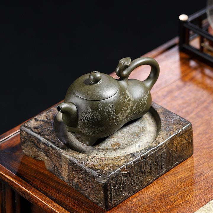 原礦大紅袍泥瑞獸漢瓦壺POT5373