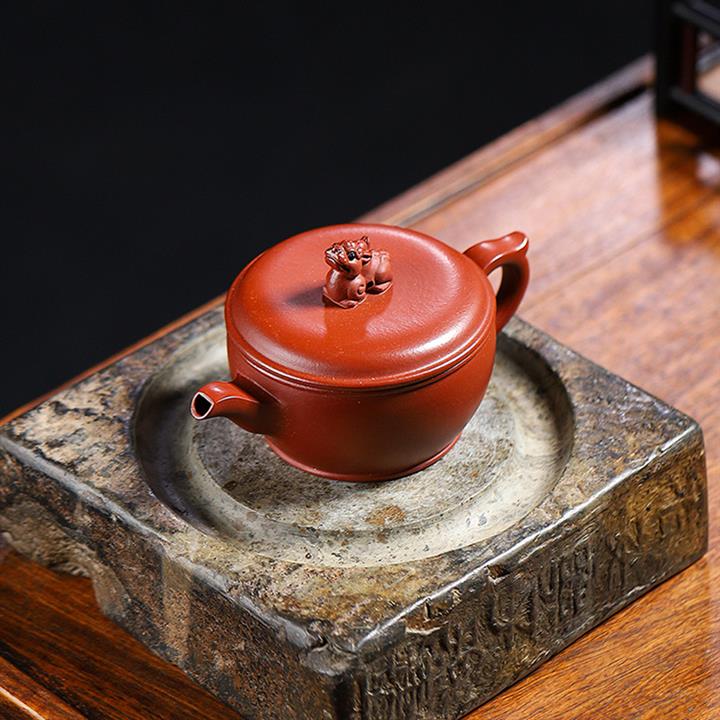 原礦大紅袍泥瑞獸漢瓦壺POT5373