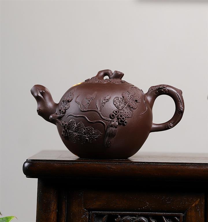 原礦紫泥松鼠葡萄紫砂壺POT5396