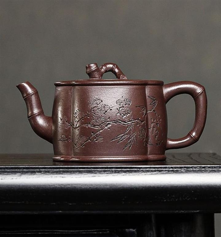 紫泥梅竹雙清紫砂壺POT5407