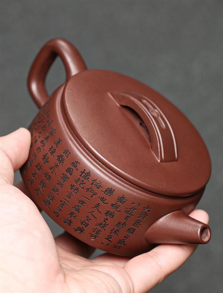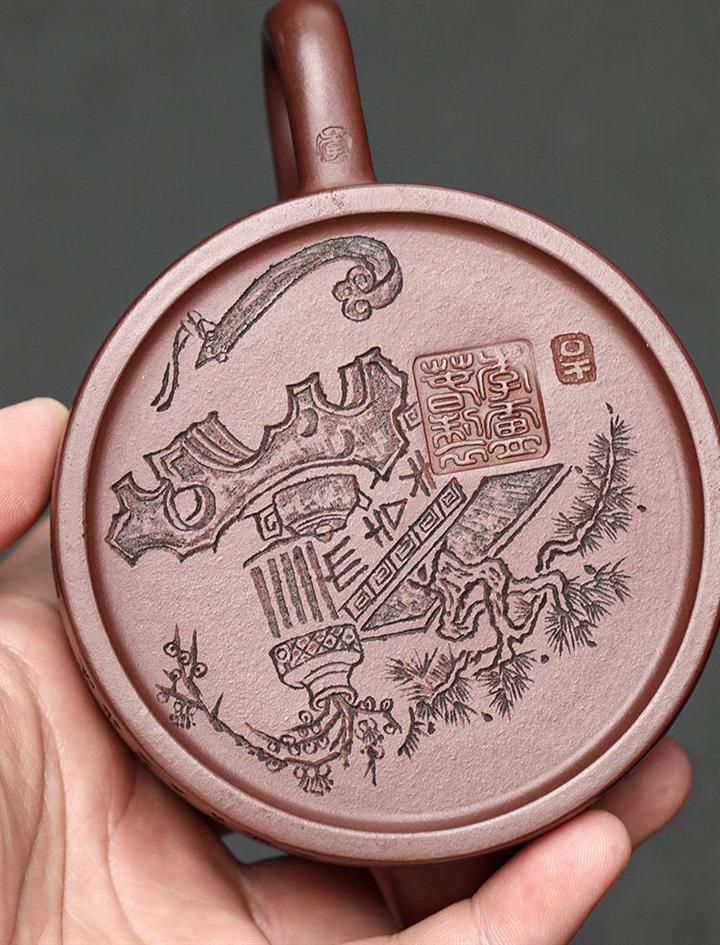 【介紹】漢瓦壺,圓器當中的壹種,古樸端莊,溫和典雅。身直而口大,平蓋板子母線吻合,很是闊朗大氣。橋鈕上镂雕裝飾,更添古韻。直嘴圓口,出水流暢,耳型端把,彎曲有度。漢瓦壺蘊含大氣素樸與大巧若拙的傳神壺韻,是衆多愛壺茶友幾案桌台上必不可少的品茗兼屬把玩、觀賞、收藏之壺形