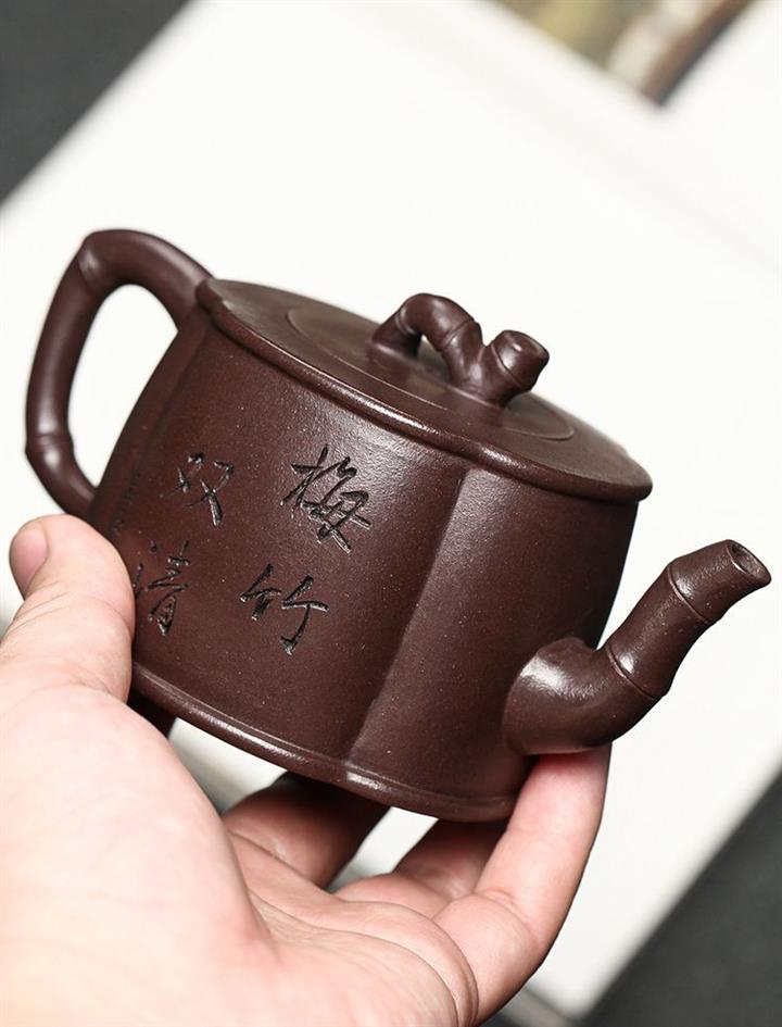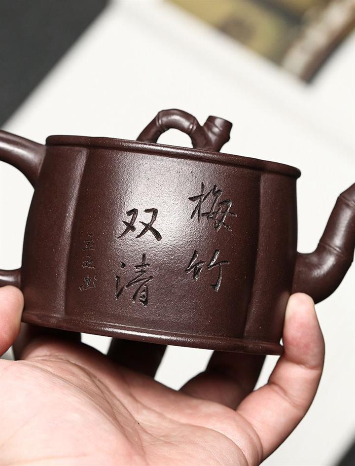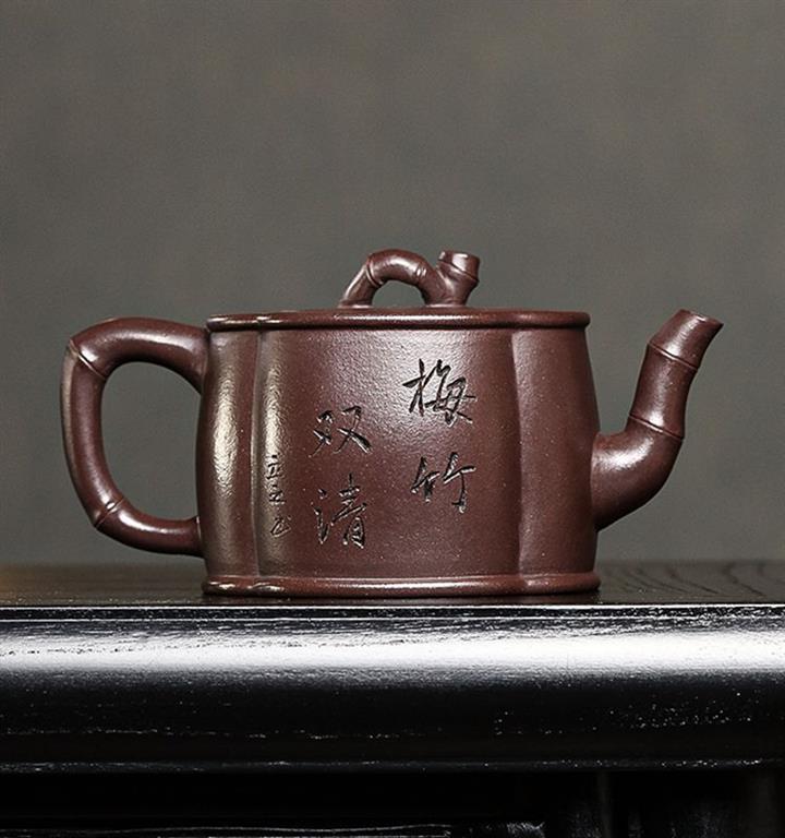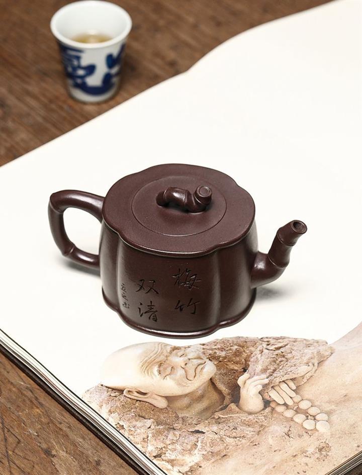 紫泥梅竹雙清紫砂壺POT5407