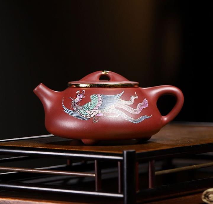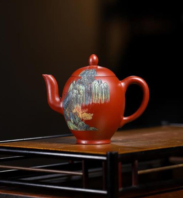 大紅袍彩繪蝴蝶桑盤紫砂壺POT5417