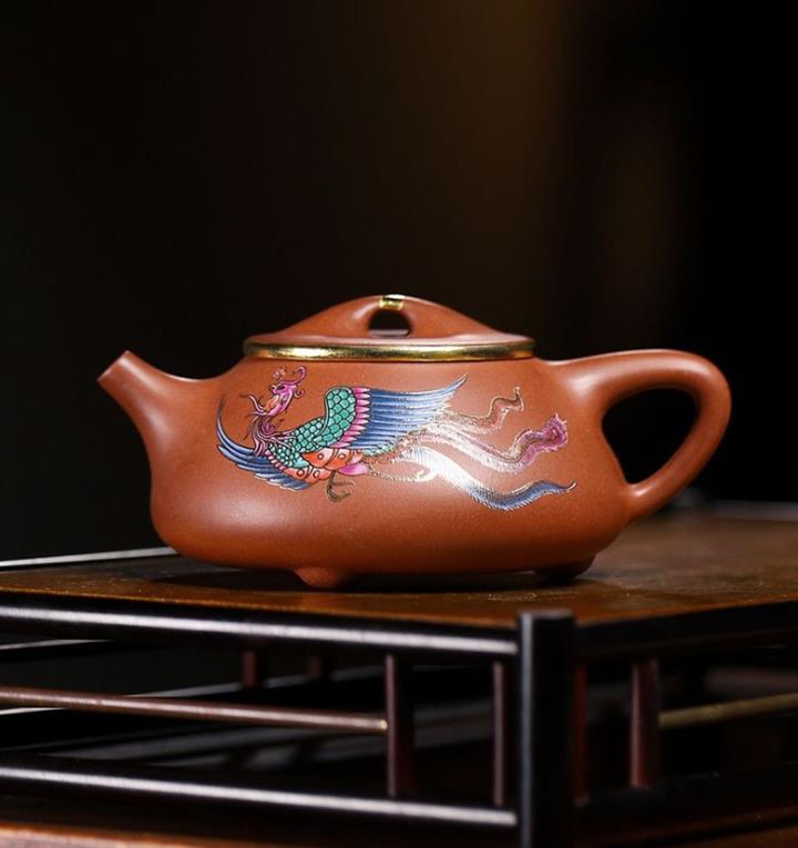 大紅袍彩繪蝴蝶桑盤紫砂壺POT5417