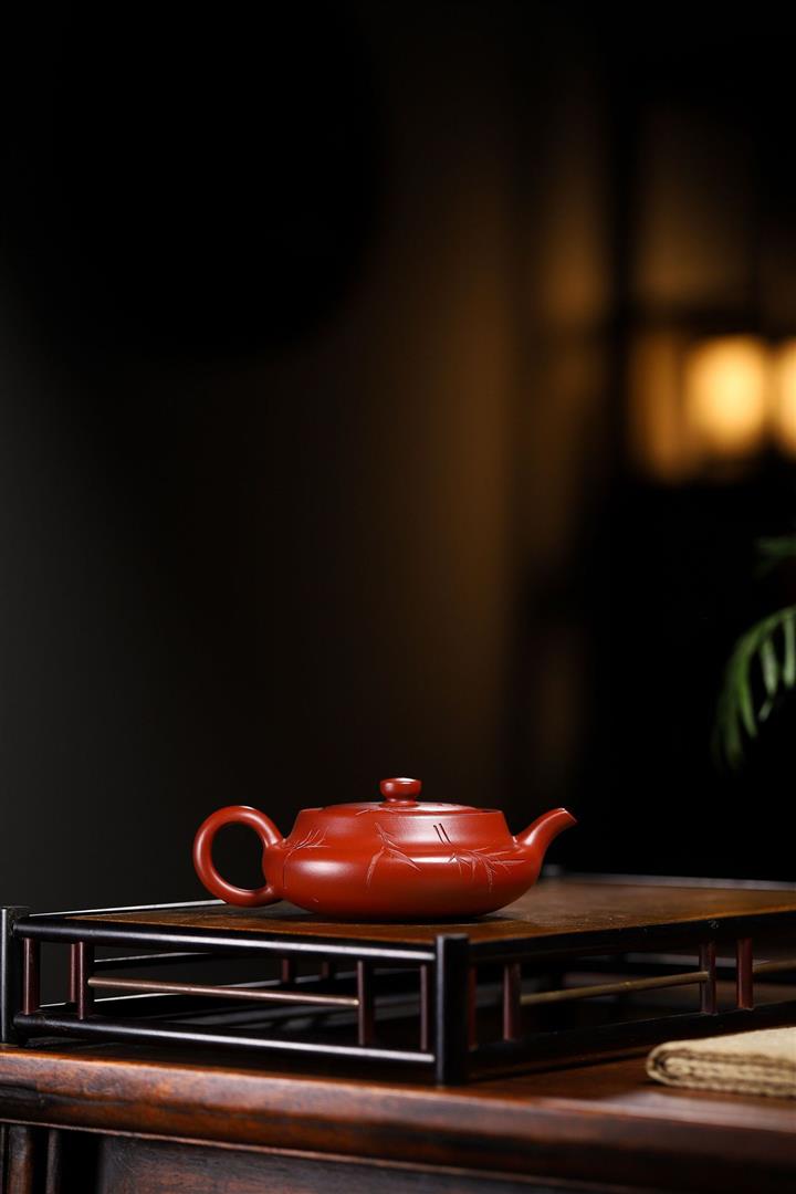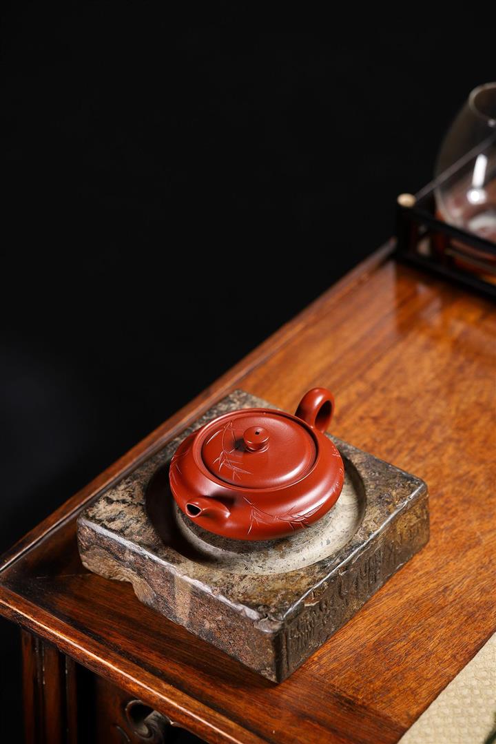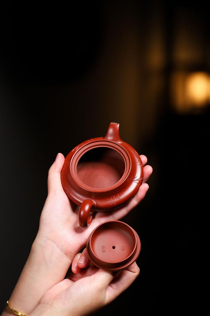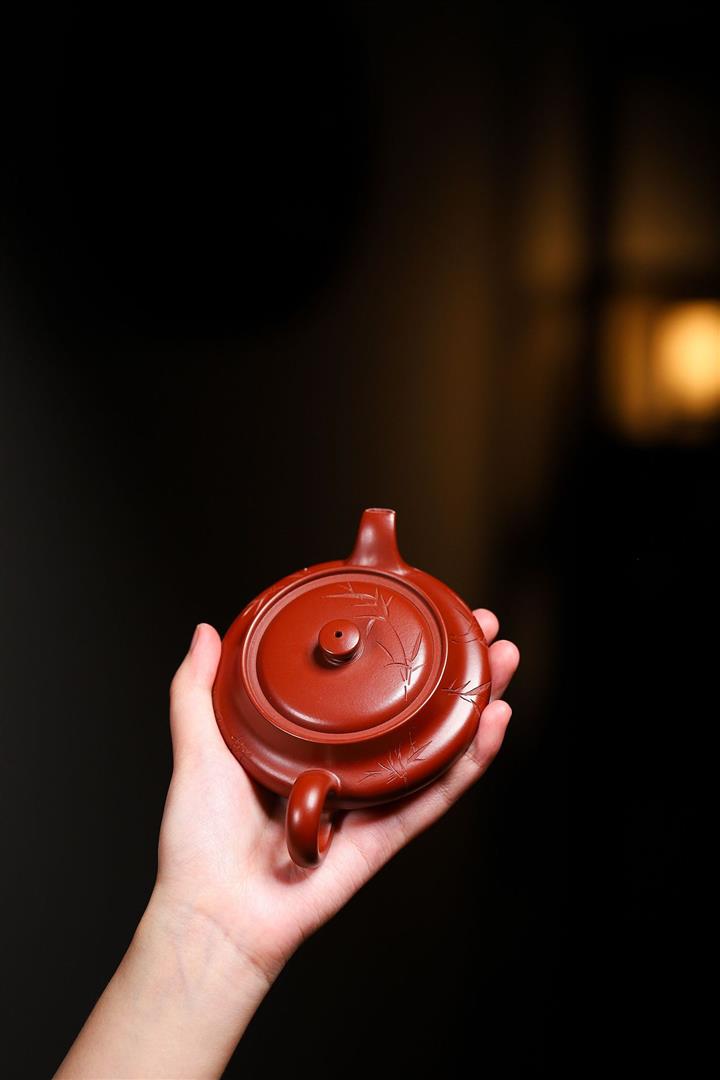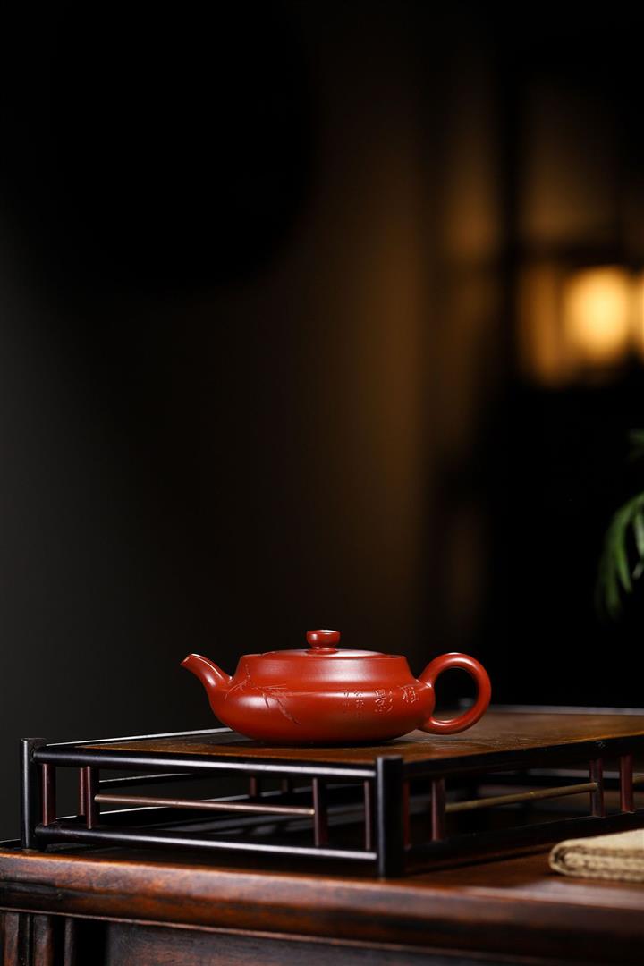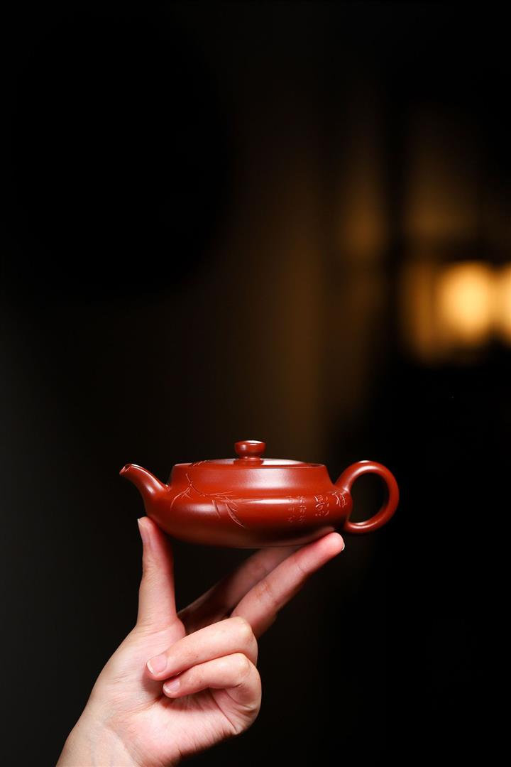 大紅袍彩繪蝴蝶桑盤紫砂壺POT5417