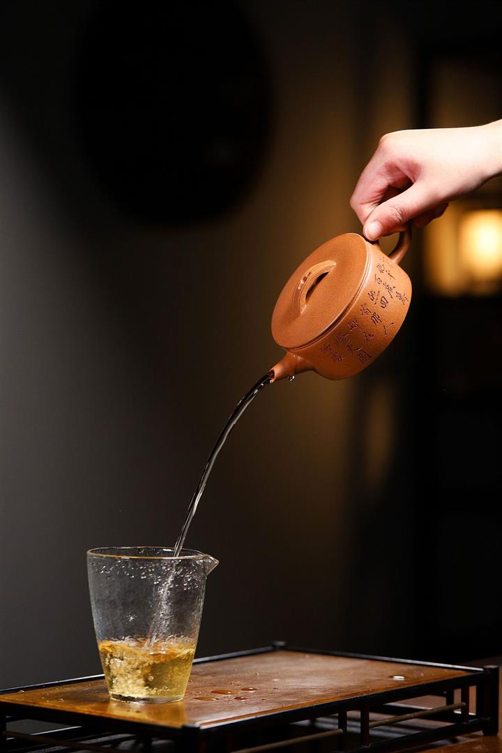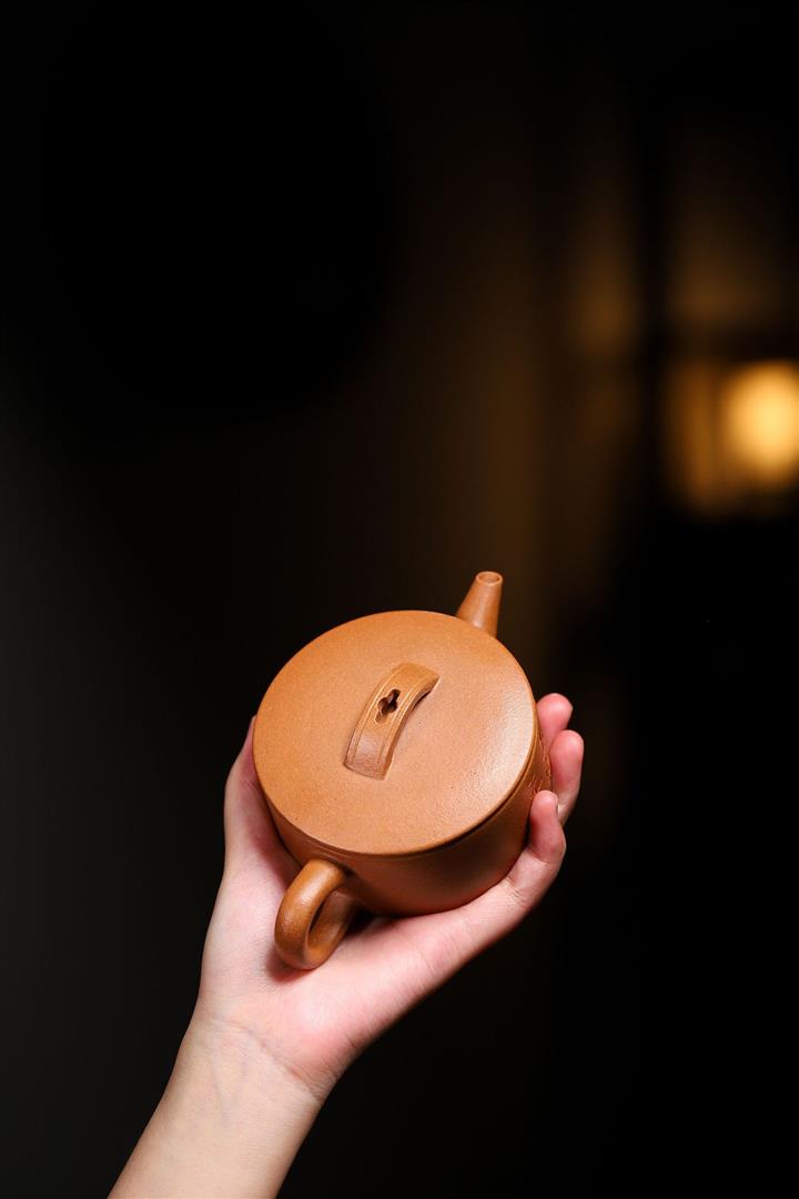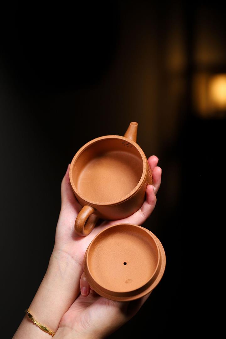 【泥料特點】砂土氣重,似淳實農民,日久使用,漸露鋒芒,養成變化甚大,溫潤莊重。線條優美自然,嘴把搭配協調,身桶配上細長的把搭配,更顯優雅高貴