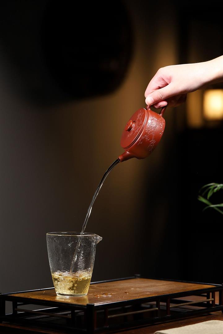 【泥料特點】砂土氣重,似淳實農民,日久使用,漸露鋒芒,養成變化甚大,溫潤莊重。線條優美自然,嘴把搭配協調,身桶配上細長的把搭配,更顯優雅高貴