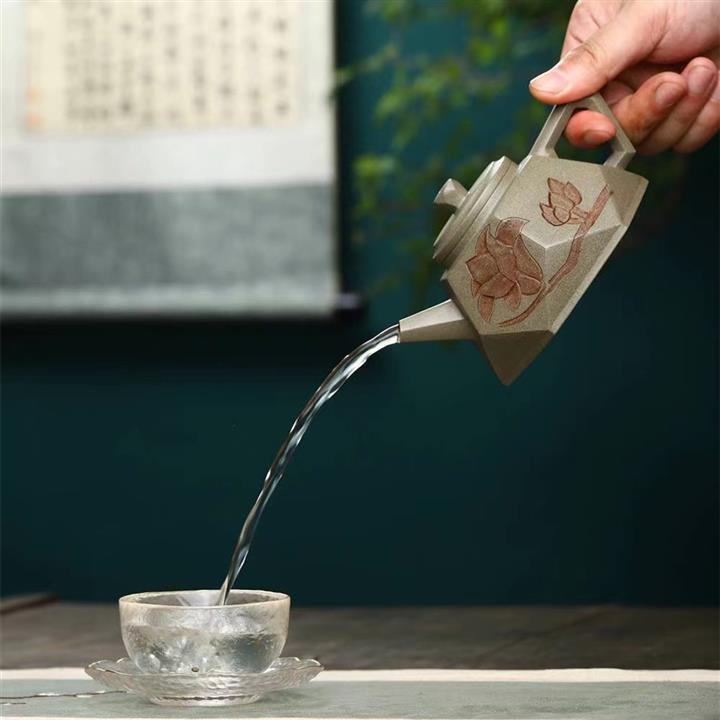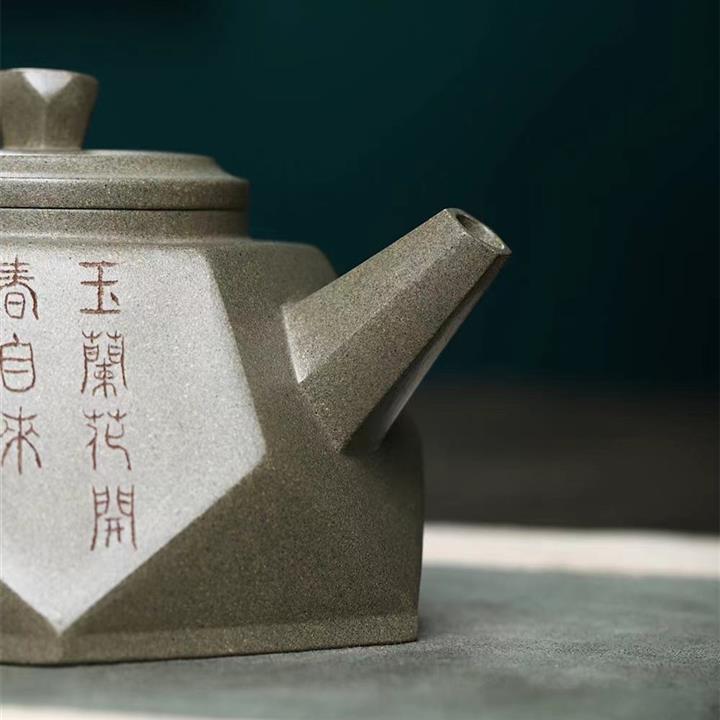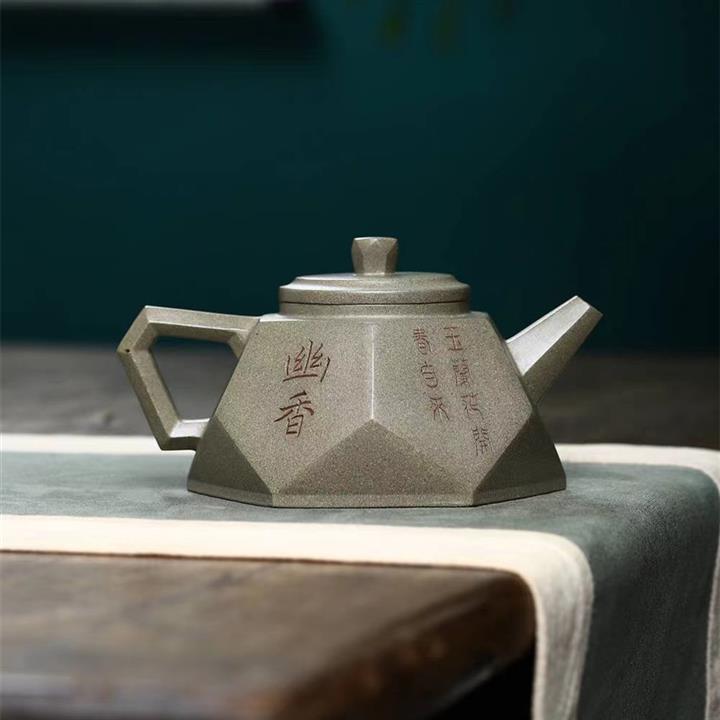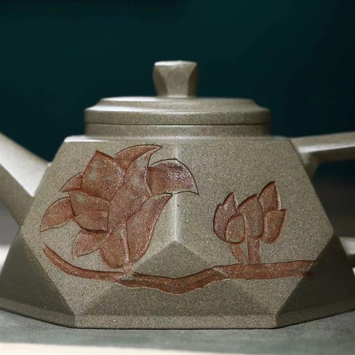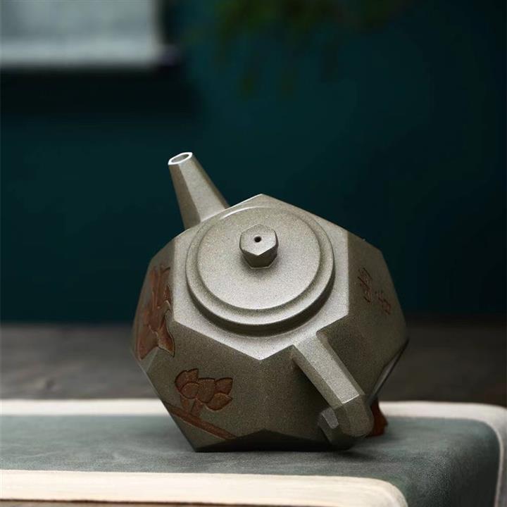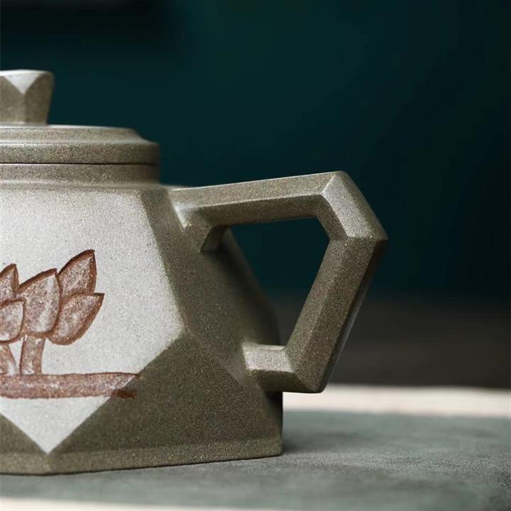 原礦綠泥刻繪漢瓦紫砂壺POT5438