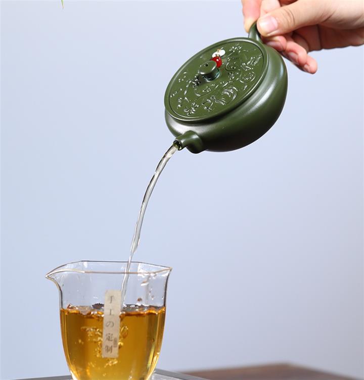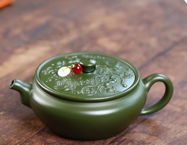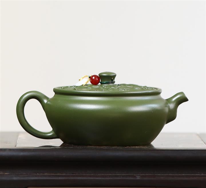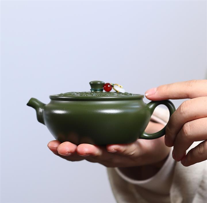 原矿绿泥绿扁鼓紫砂壺POT5433