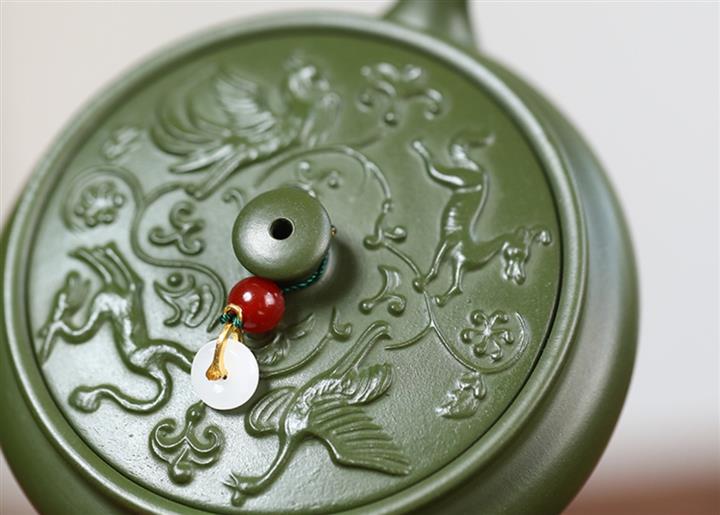 原礦綠泥刻繪漢瓦紫砂壺POT5438