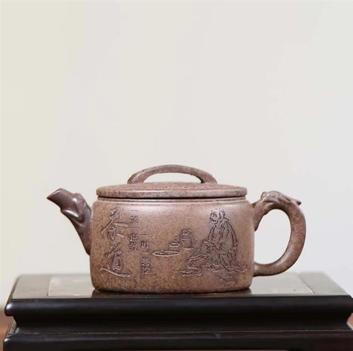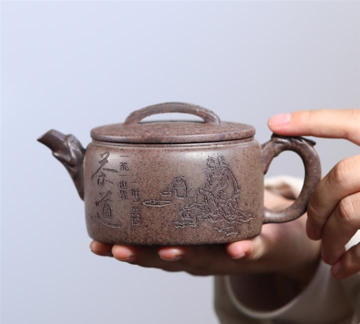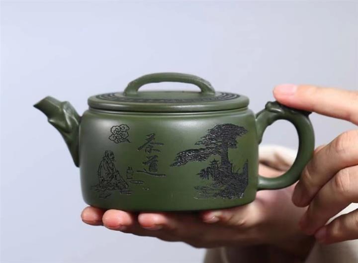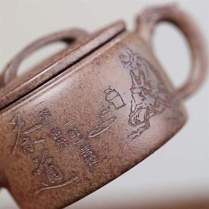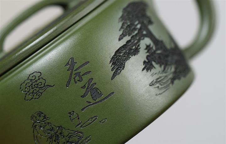 原礦綠泥刻繪漢瓦紫砂壺POT5438