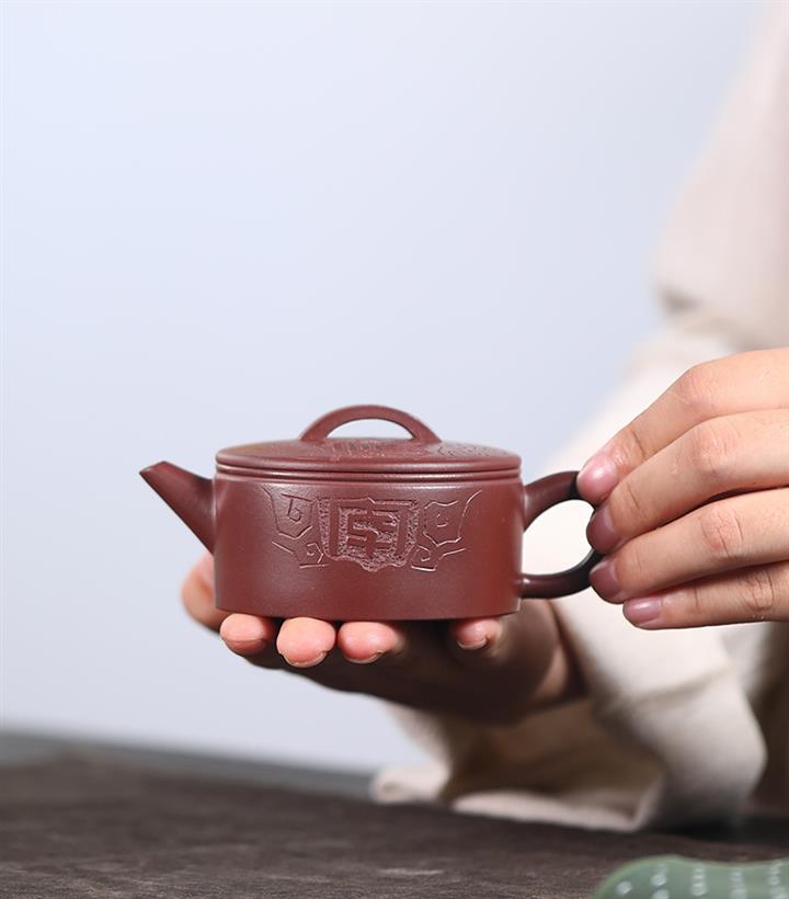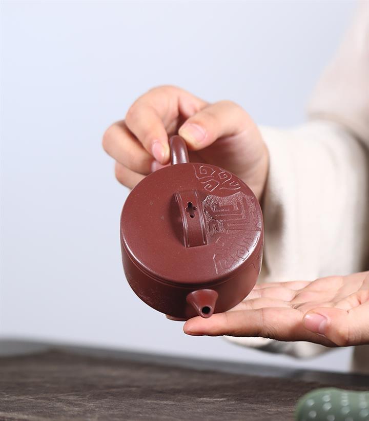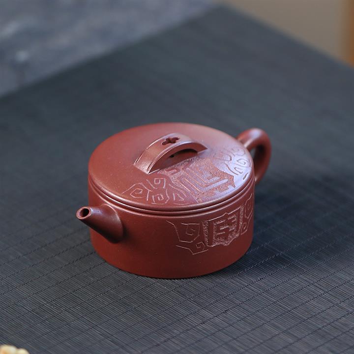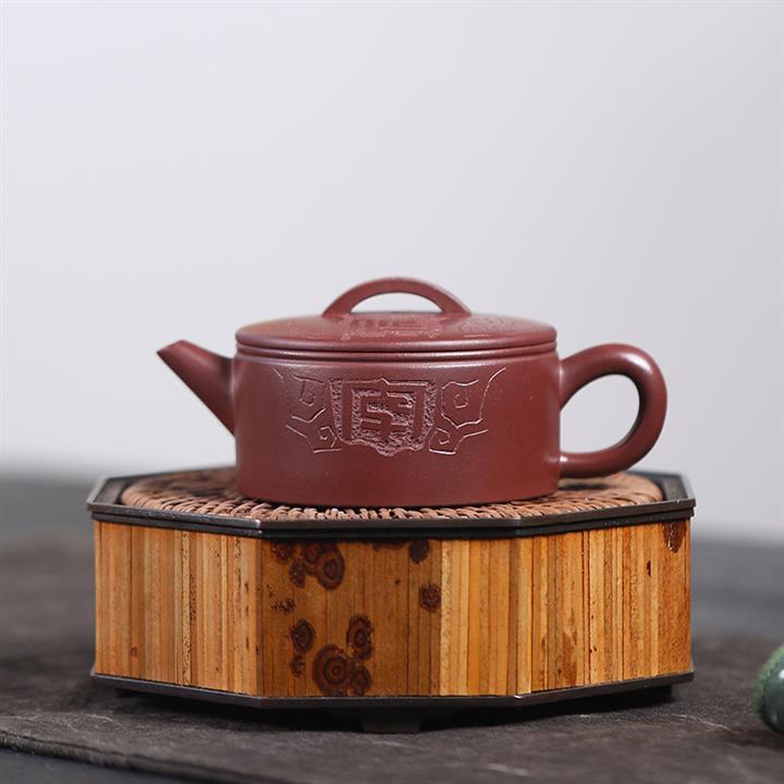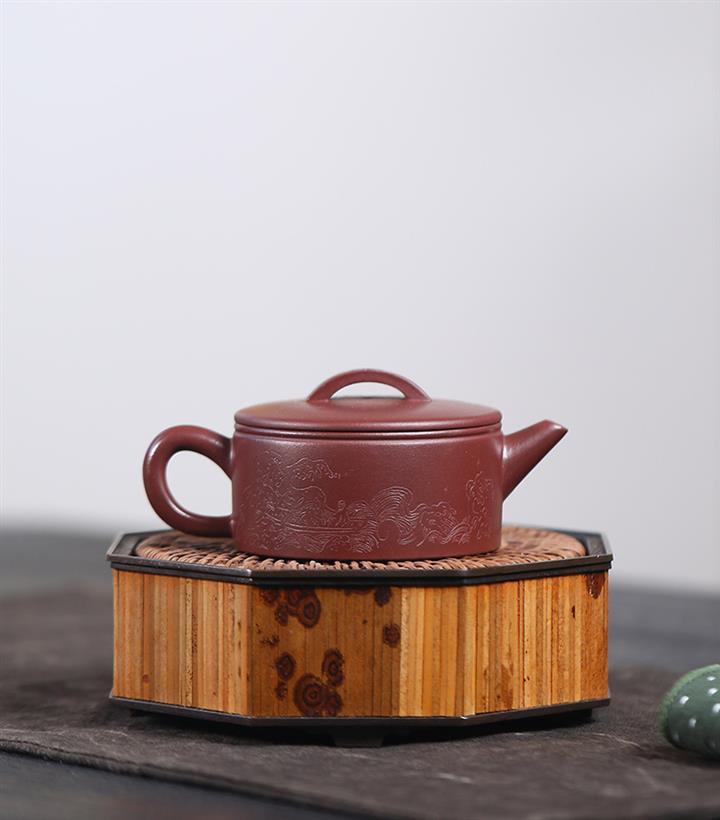 原礦紅皮龍刻竹漢瓦紫砂壺POT5455