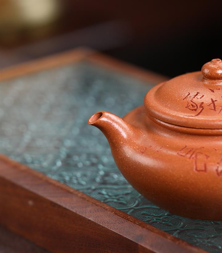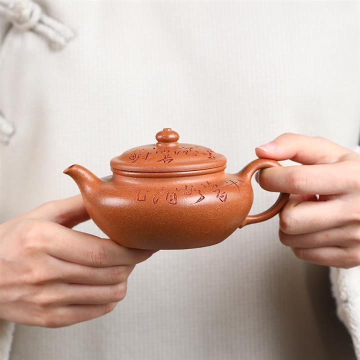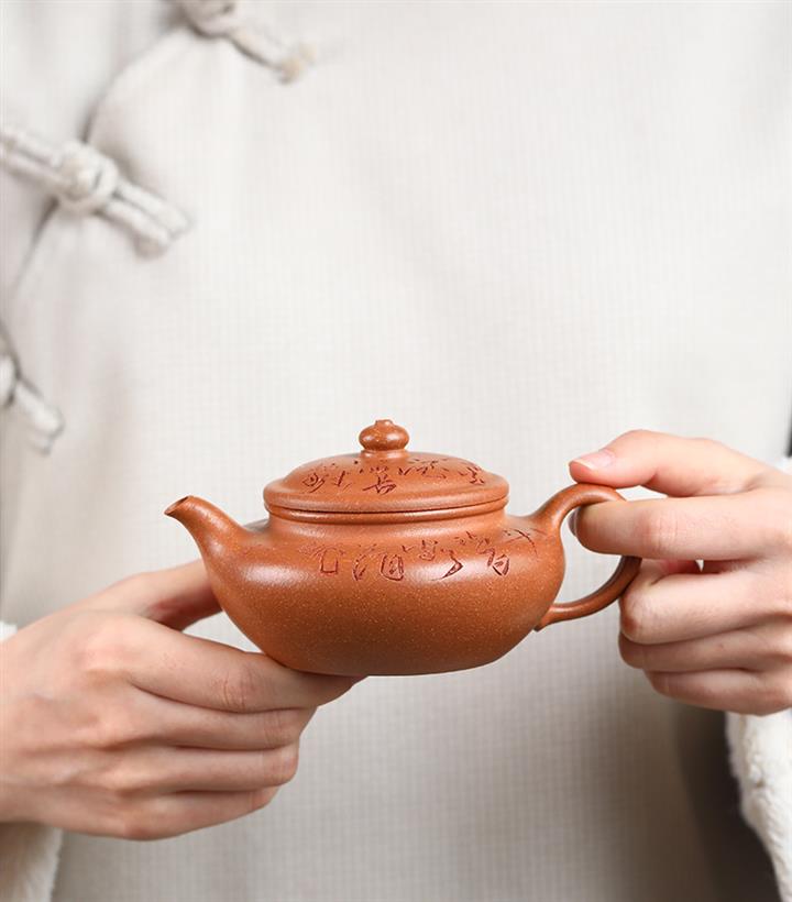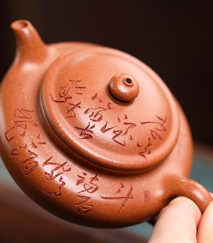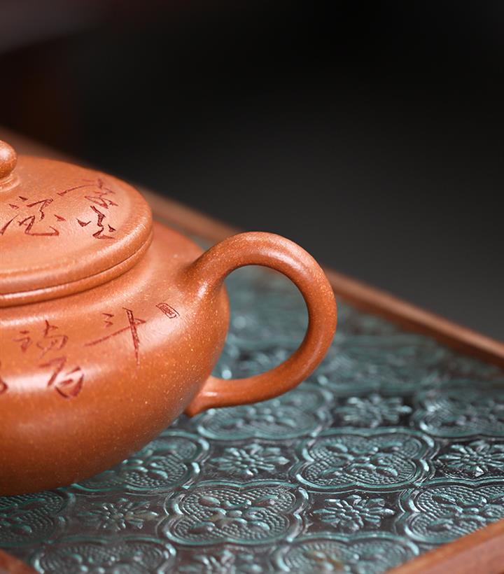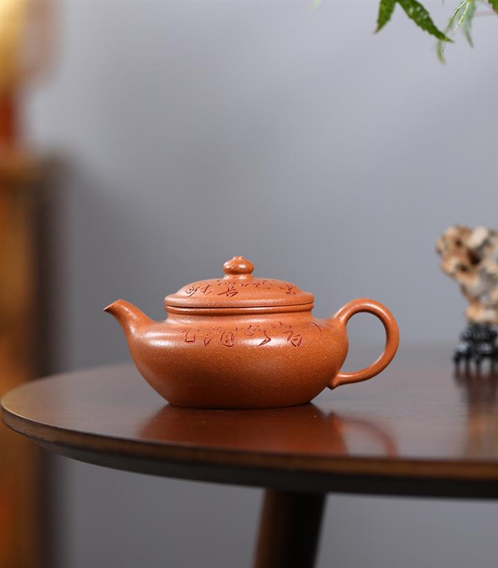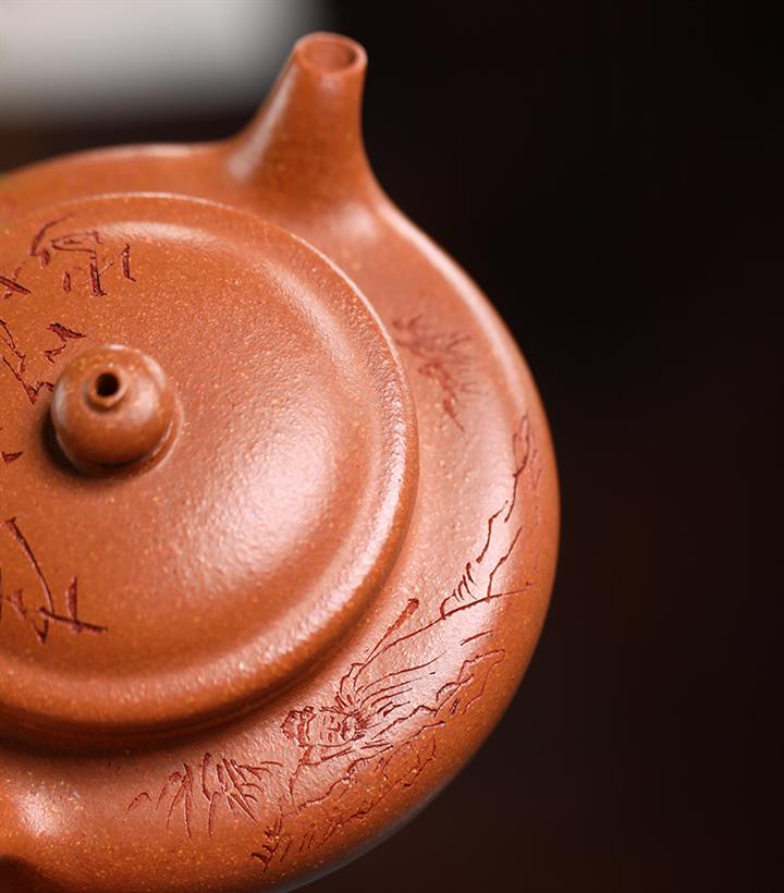 原礦紅皮龍刻竹漢瓦紫砂壺POT5455