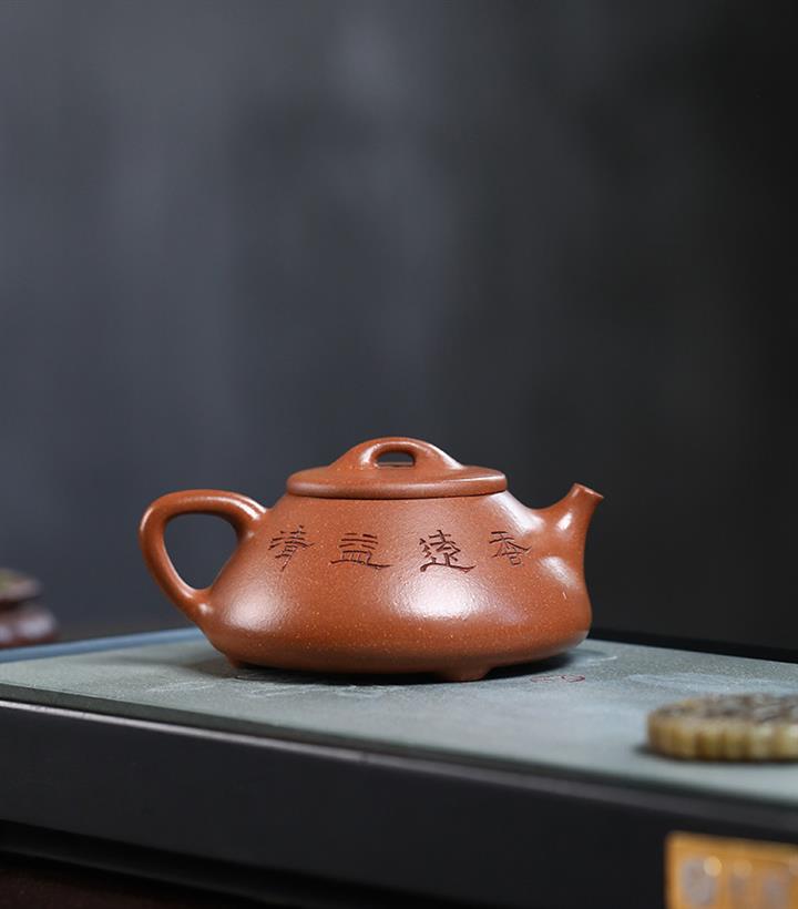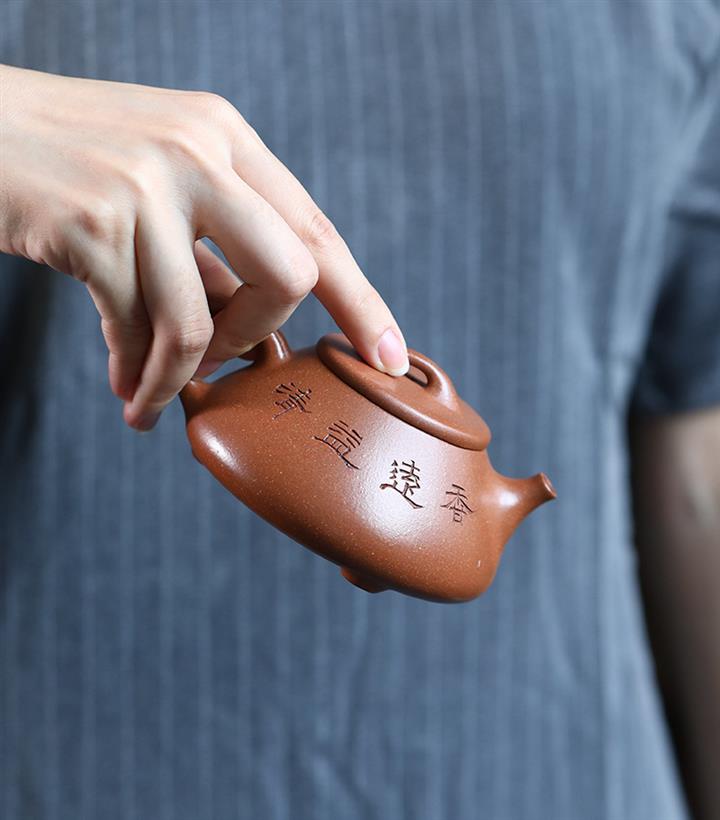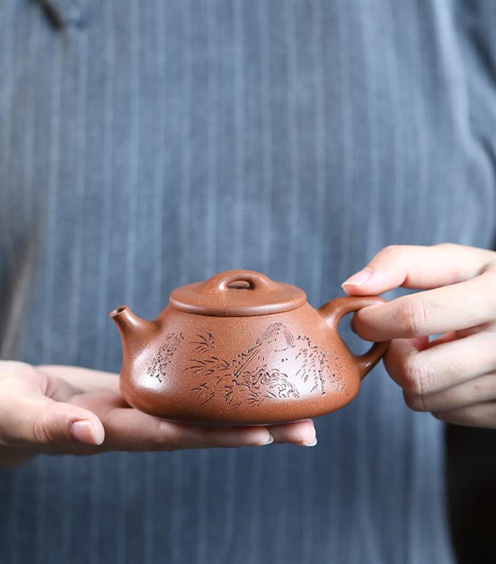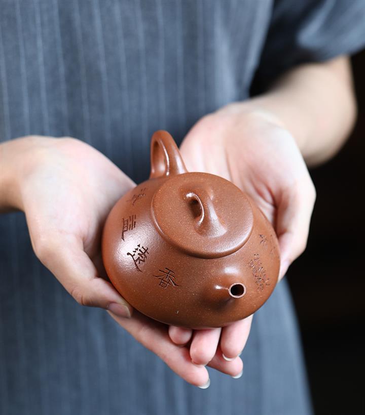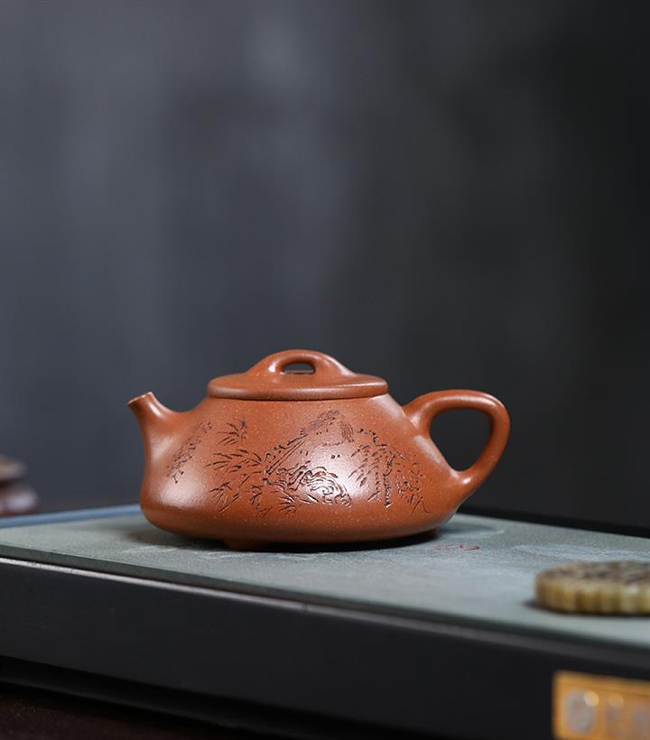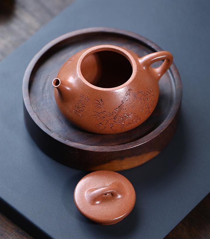原礦紅皮龍刻竹漢瓦紫砂壺POT5455