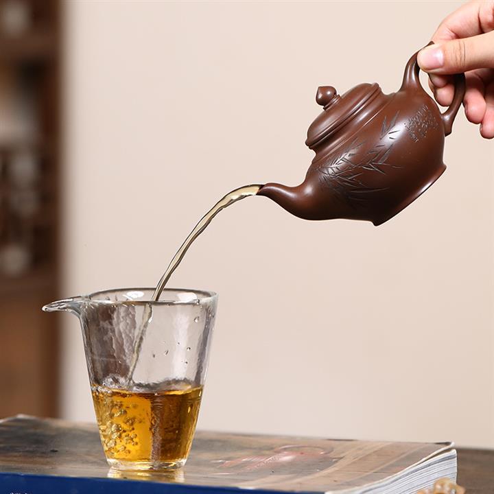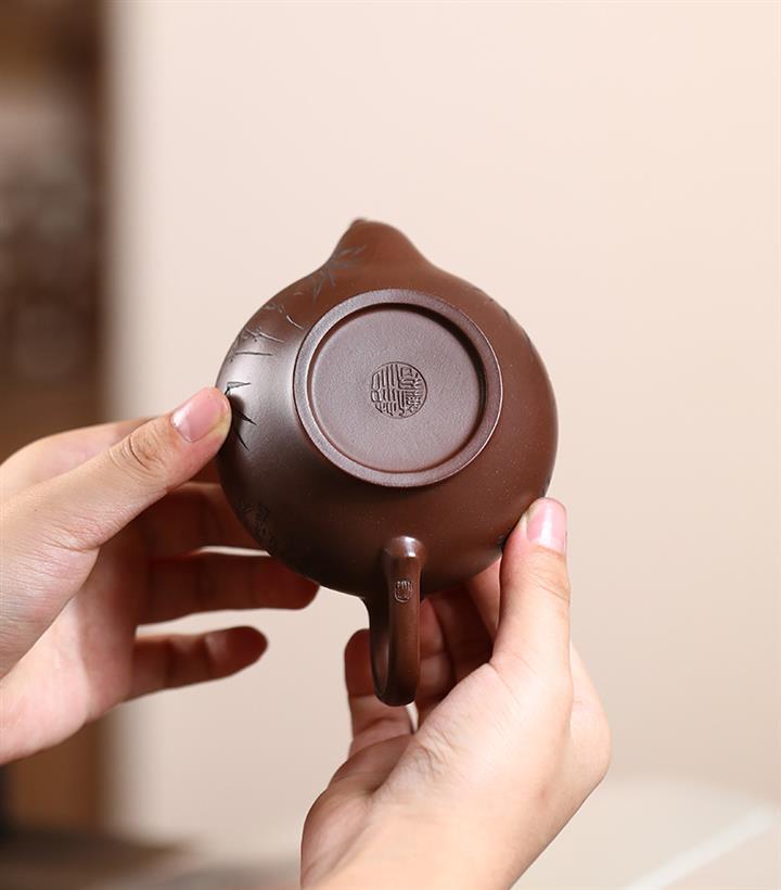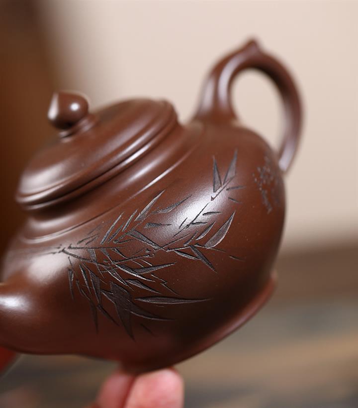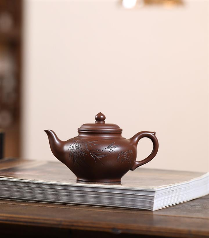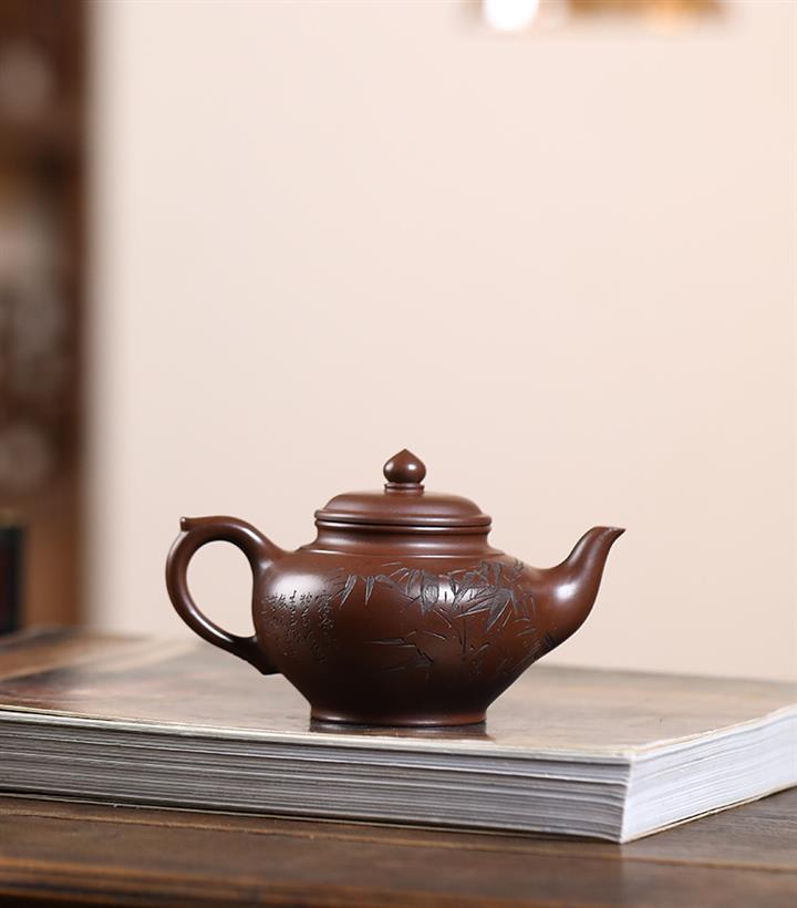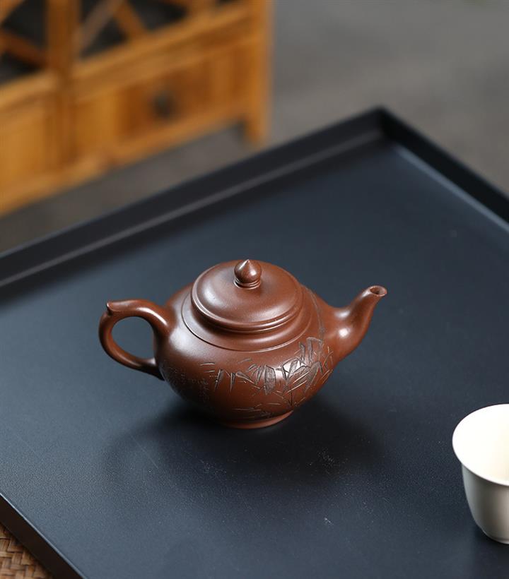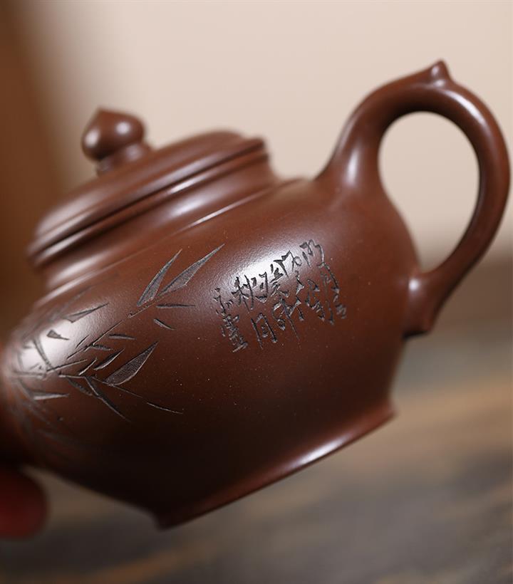 原礦紅皮龍刻竹漢瓦紫砂壺POT5455