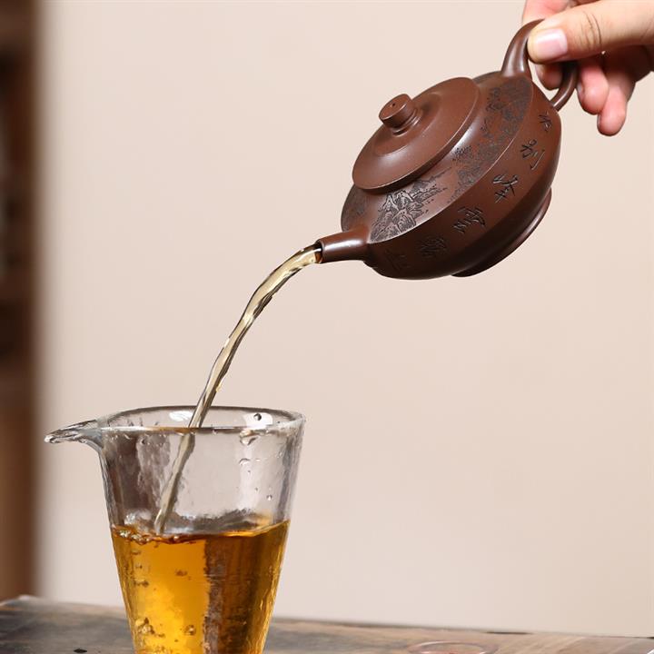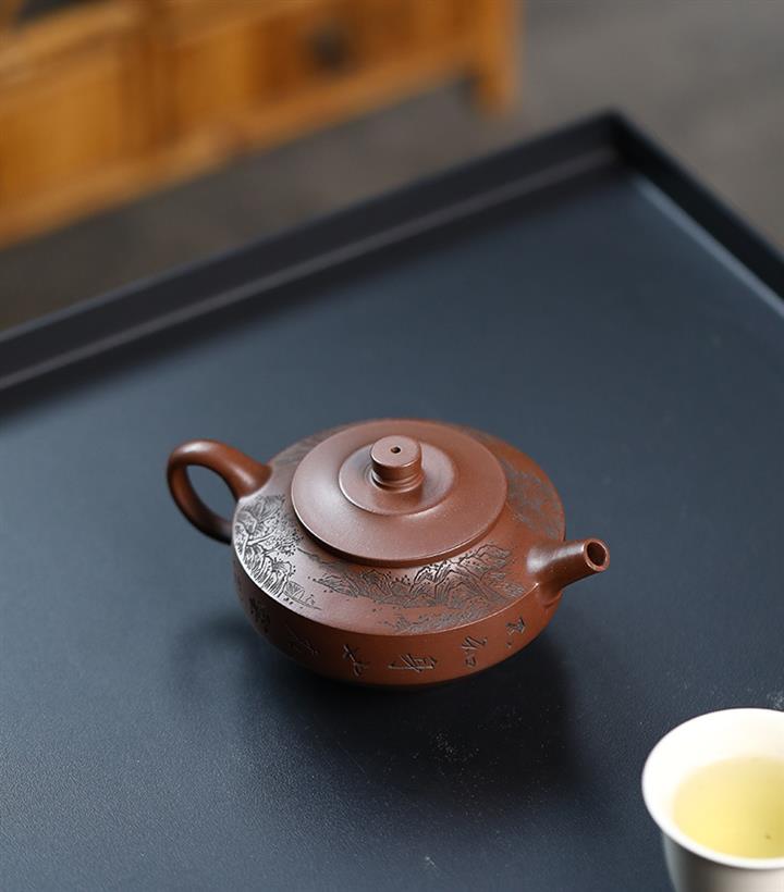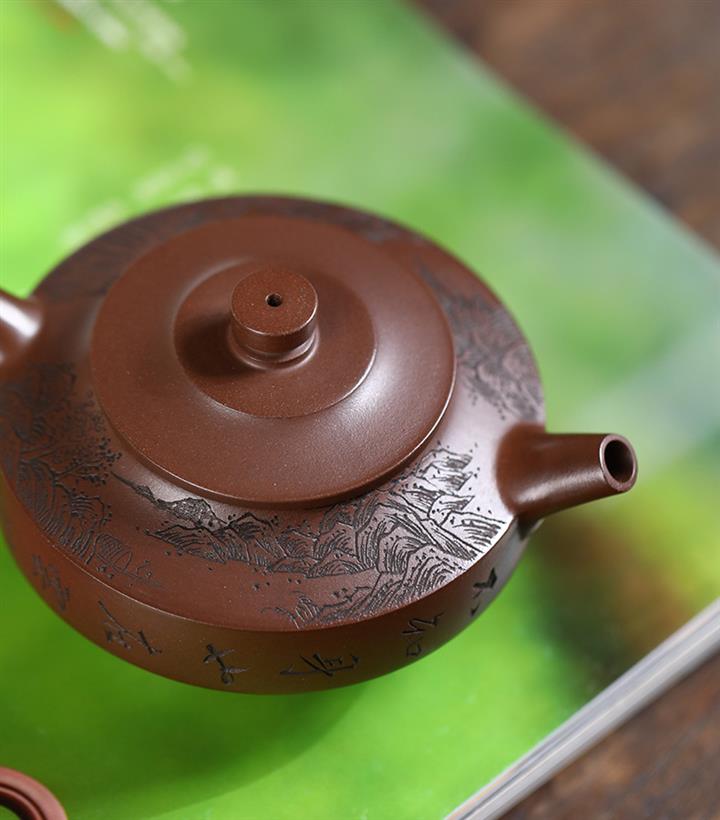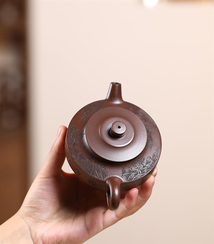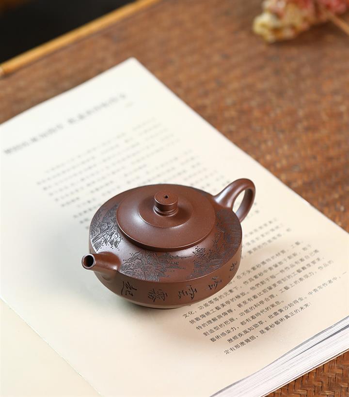 原礦紅皮龍刻竹漢瓦紫砂壺POT5455