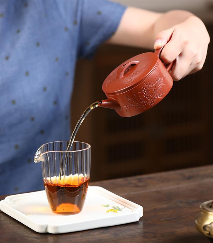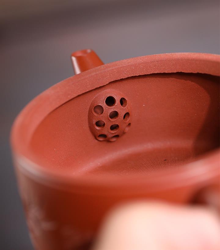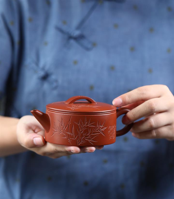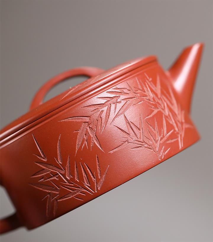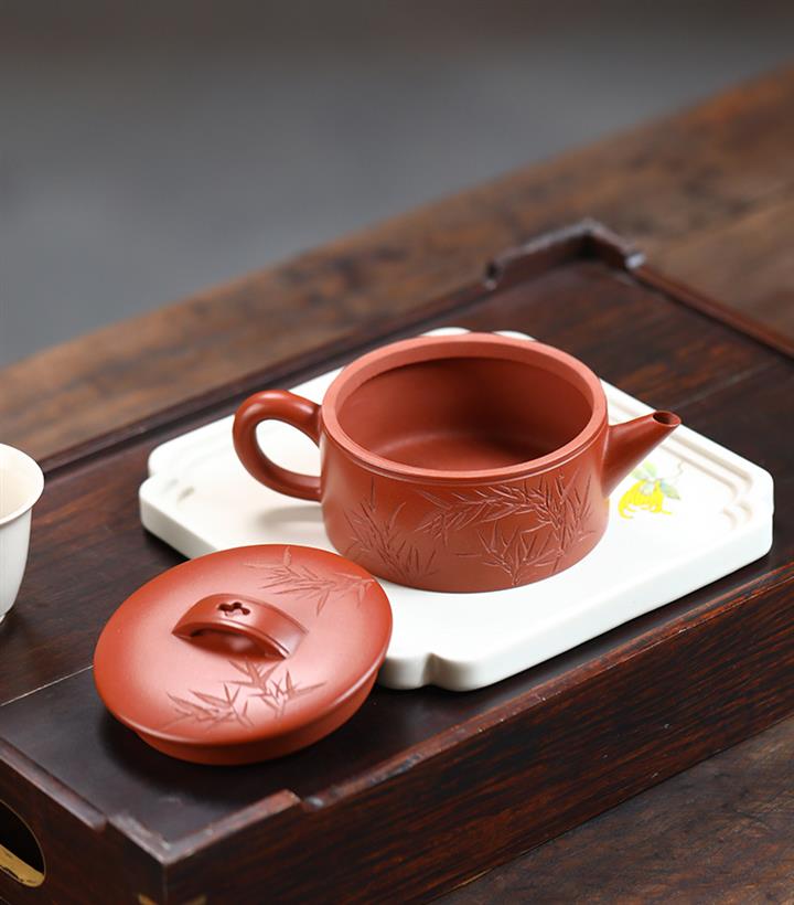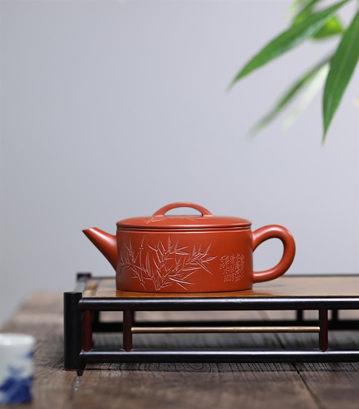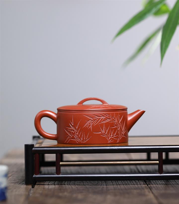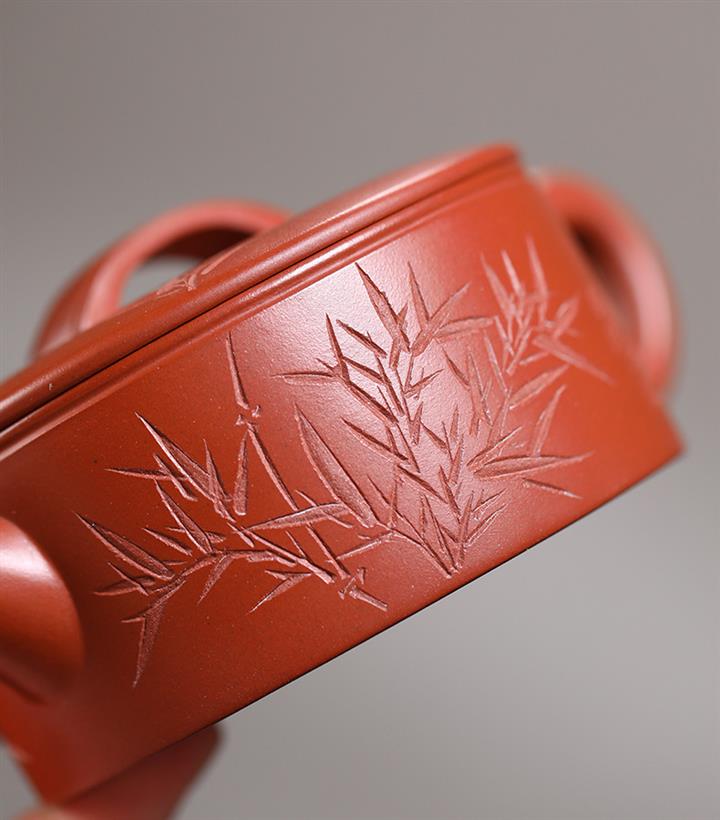 原礦紅皮龍刻竹漢瓦紫砂壺POT5455