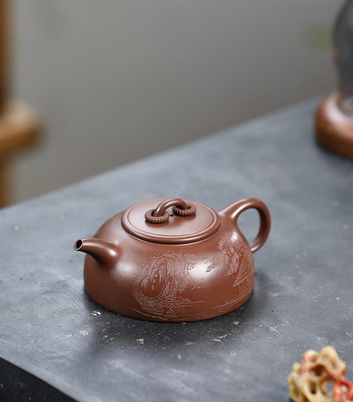 還原燒段泥山水石瓢紫砂壺POT5472