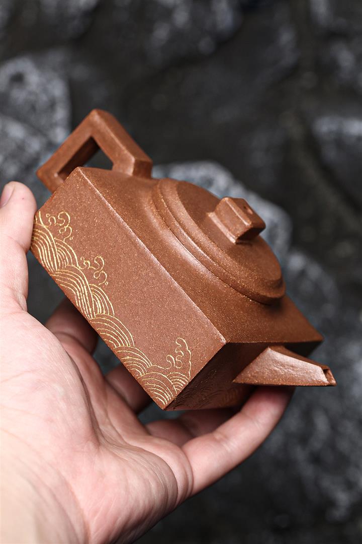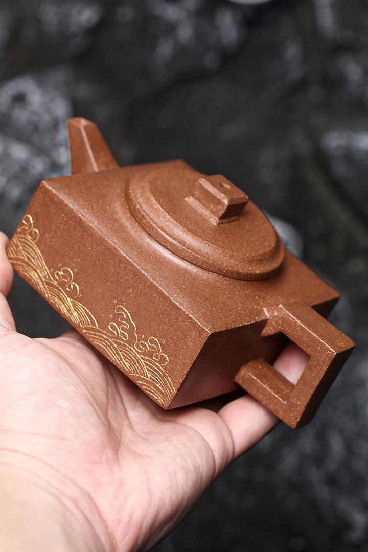 紫泥窯變柴燒炮嘴漢瓦紫砂壺POT5481