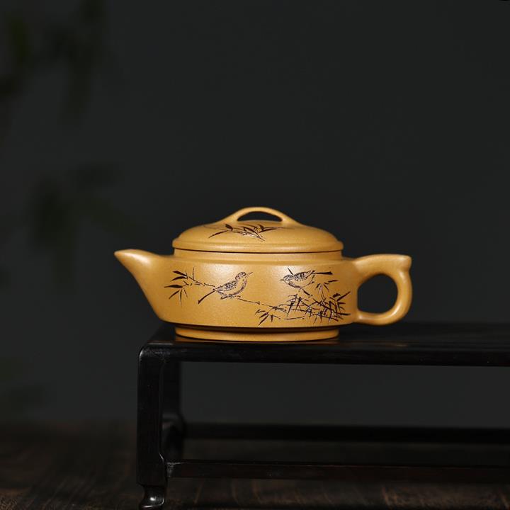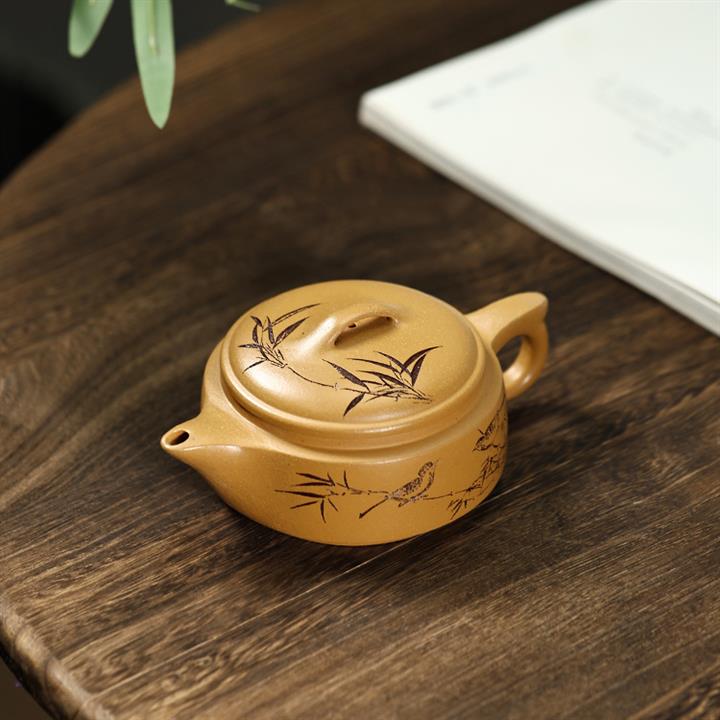 段泥刻繪小鳥德鐘紫砂壺POT5485