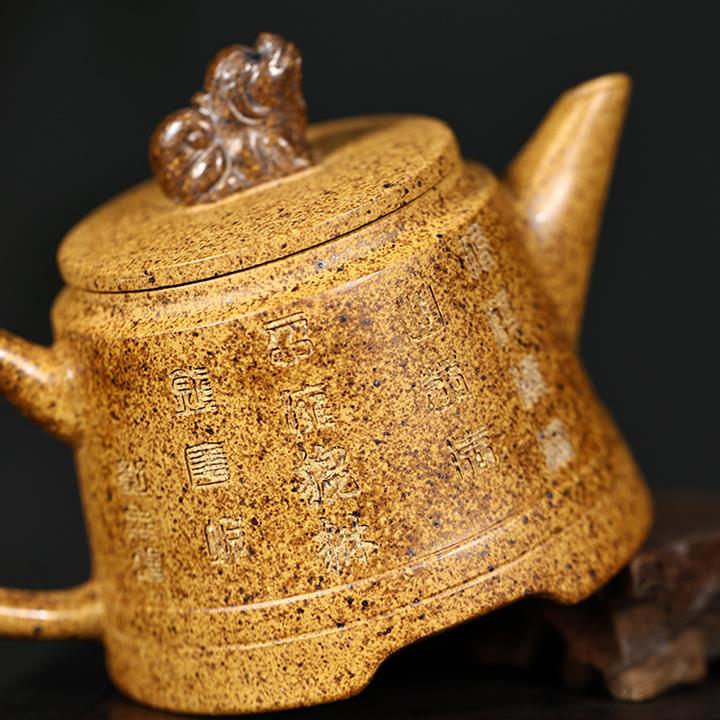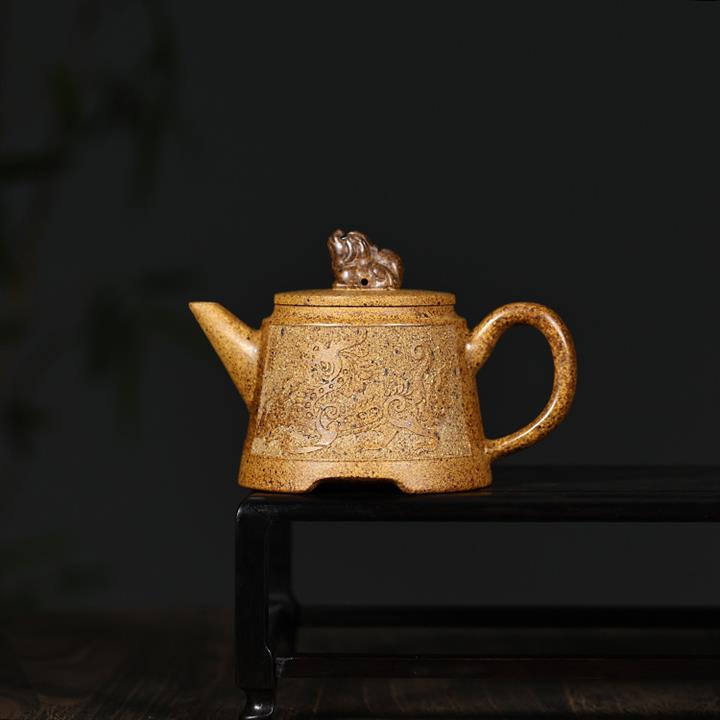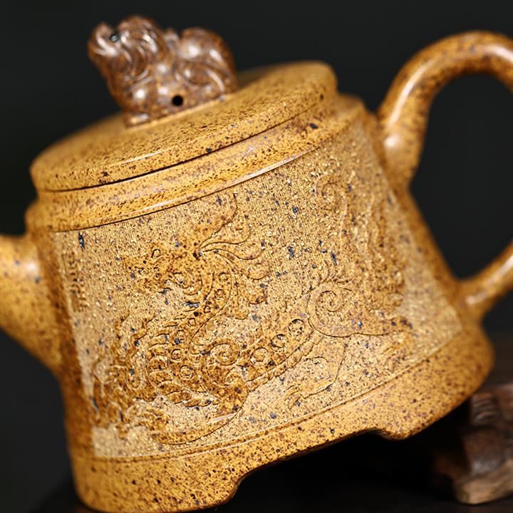 【介紹】此壺名為金鐘壺,是紫砂壺中的經典款型。該壺比例協調,器型大氣,壺身刻龍,出水流暢,泥料透氣性好,段泥高溫窯變,容易泡養,配證書,送壺繩,禮品盒包裝。