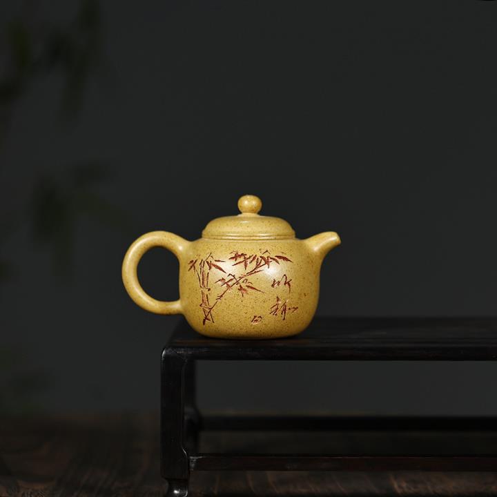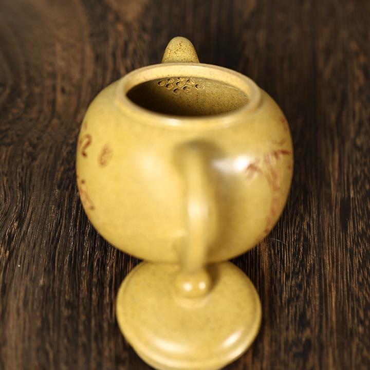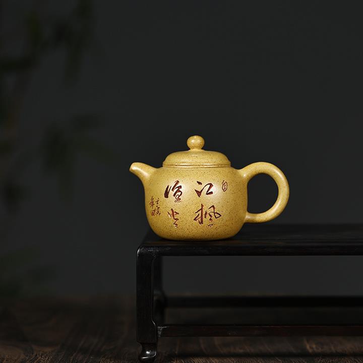 【介紹】此壺名為匏尊壺,是紫砂壺中的經典款型。該壺比例協調,器型小巧,壺身手工刻字,高溫燒黃金段泥,出水流暢,泥料透氣性好,容易泡養,配證書,送壺繩,禮品盒包裝。