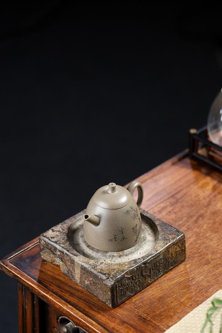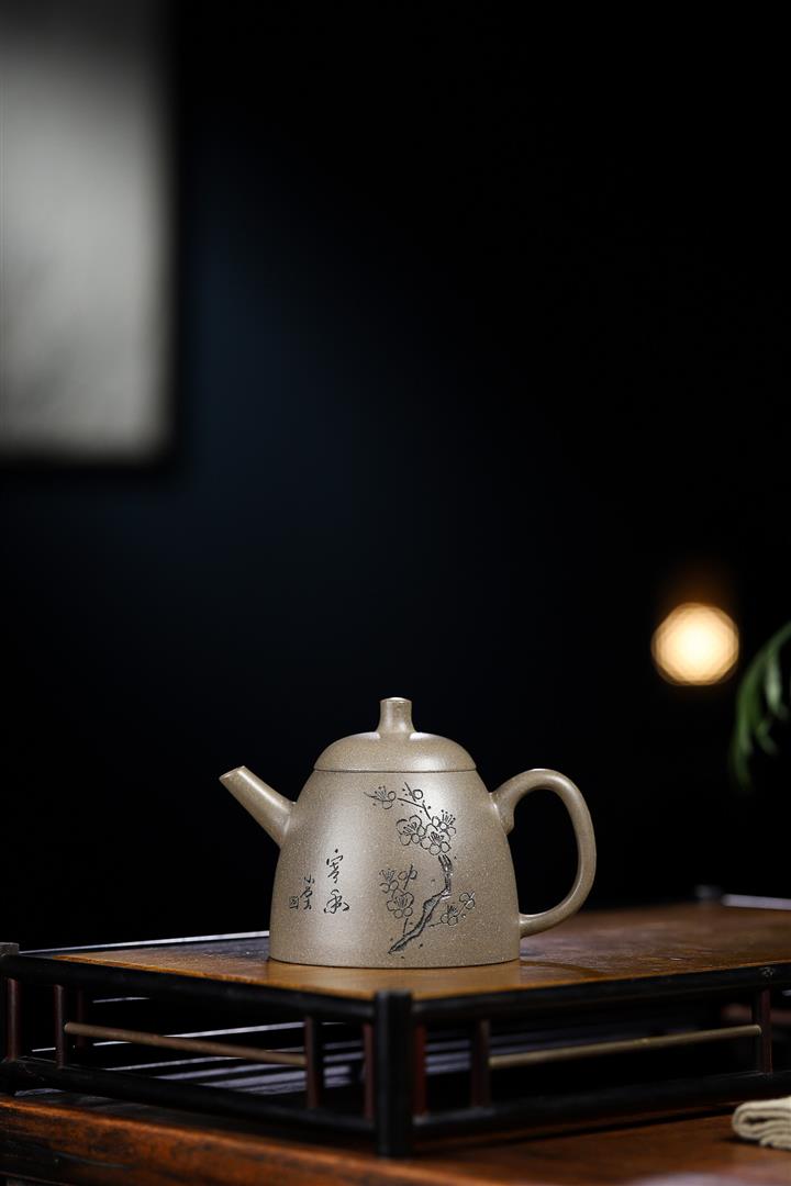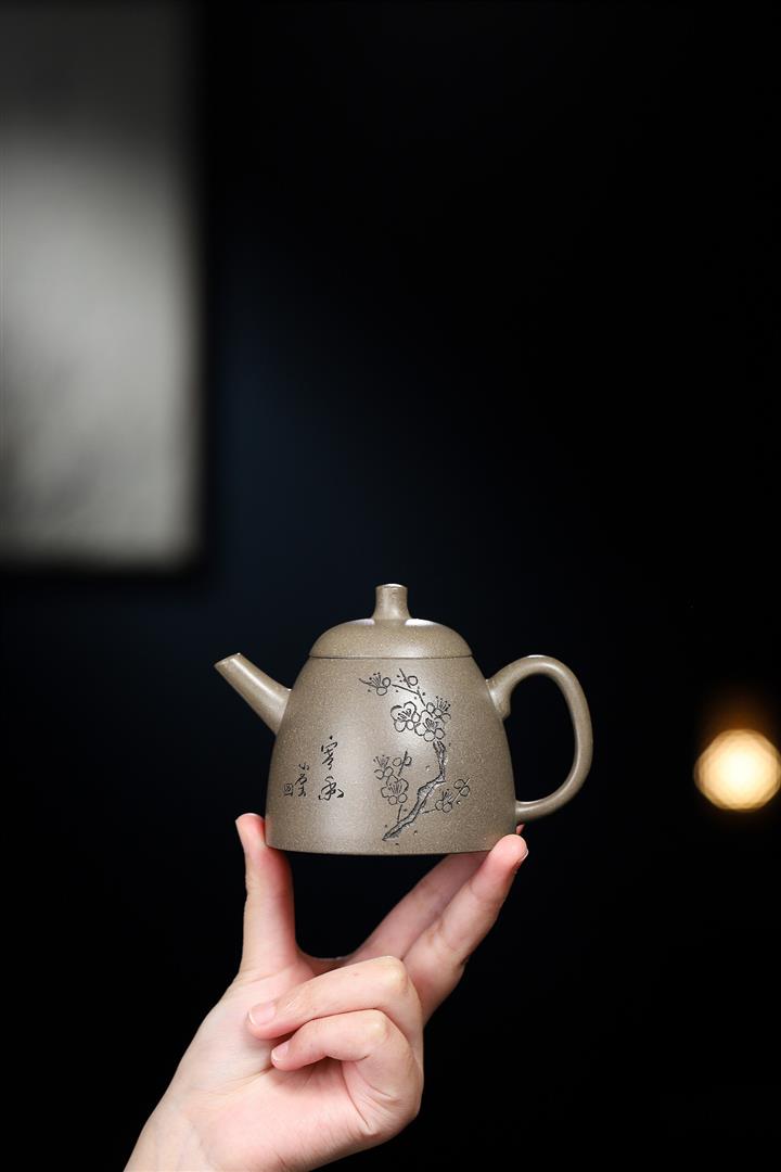 陳腐三十年老青灰高金鐘紫砂壺POT5499