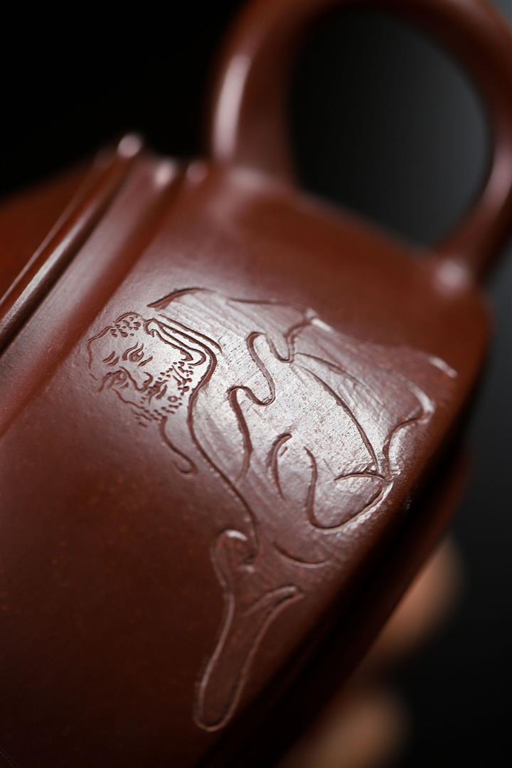 【泥料特點】砂土氣重,似淳實農民,日久使用,漸露鋒芒,養成變化甚大,温潤莊重。綫條優美自然,嘴把搭配協調,身桶配上細長的把搭配,更顯優雅高貴