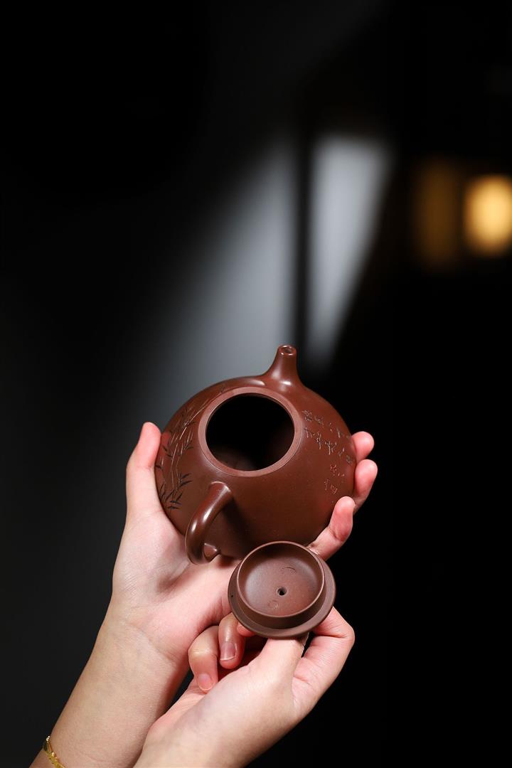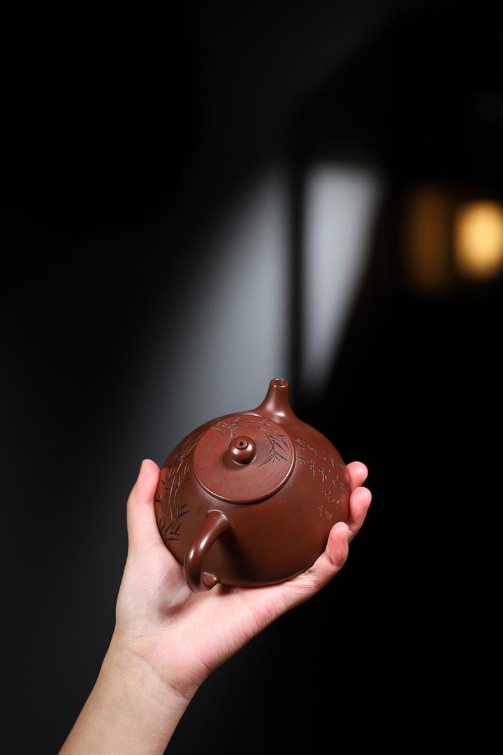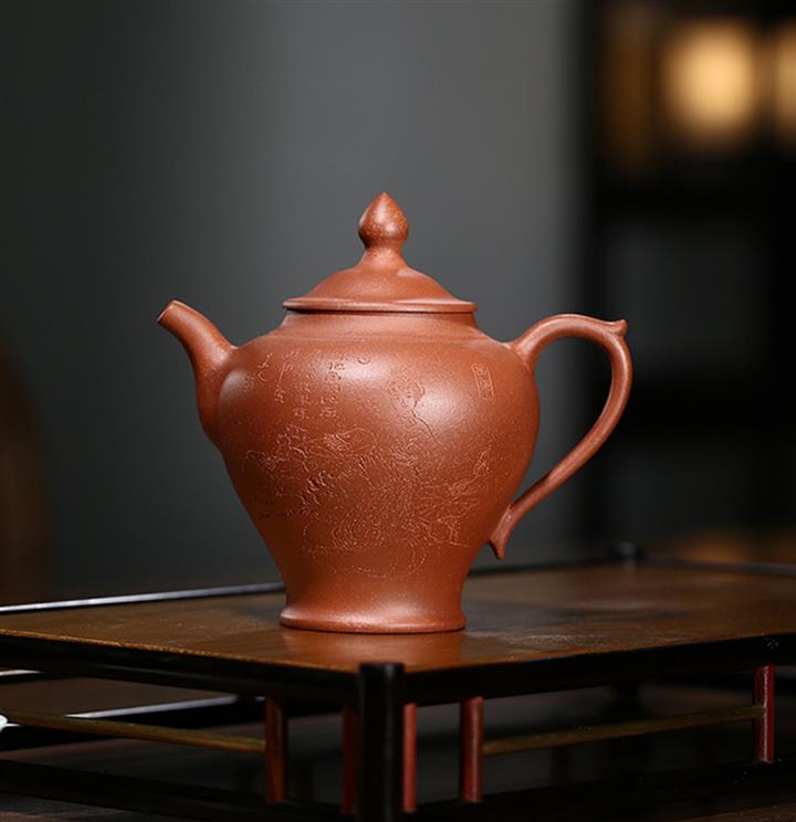 大紅袍還原燒松針壺紫砂壺POT5536