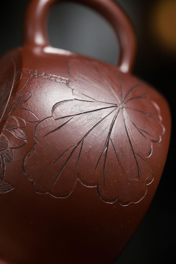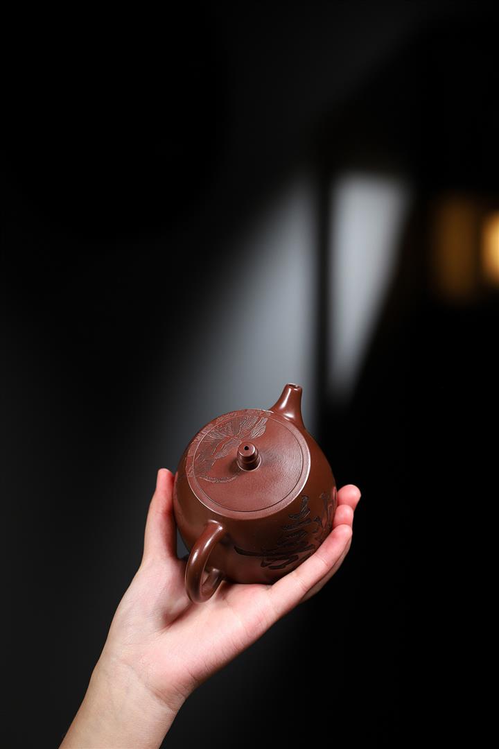 大紅袍還原燒松針壺紫砂壺POT5536