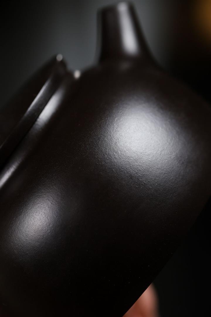 【泥料特點】砂土氣重,似淳實農民,日久使用,漸露鋒芒,養成變化甚大,溫潤莊重。線條優美自然,嘴把搭配協調,身桶配上細長的把搭配,更顯優雅高貴