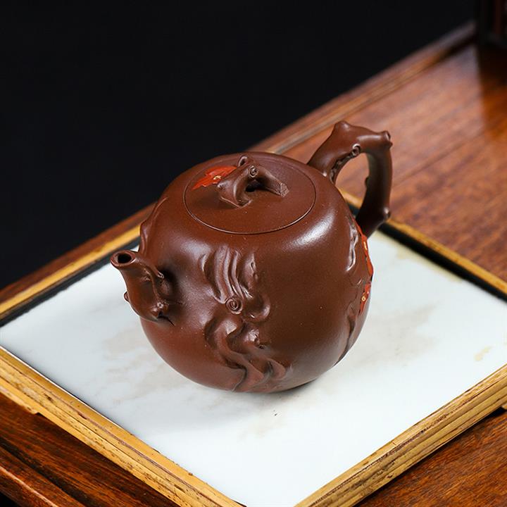 原礦紫泥枯木逢春紫砂壺POT5537