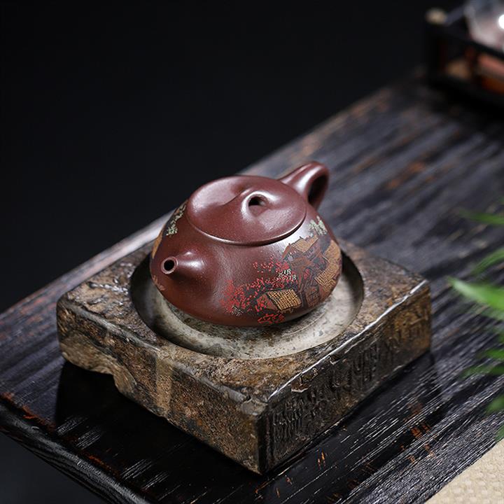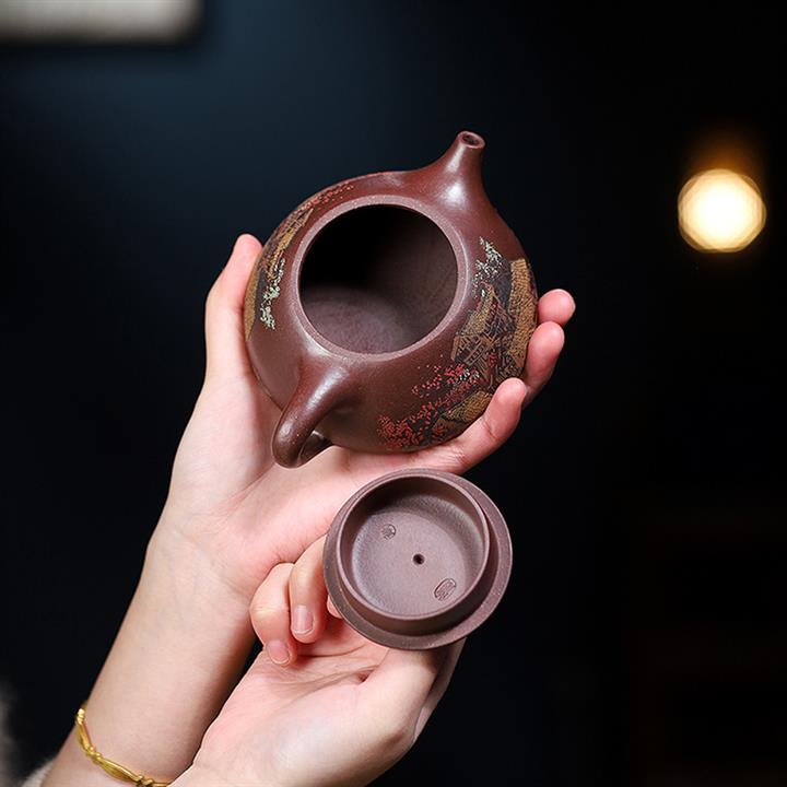原礦紫泥泥繪石瓢紫砂壺POT5548