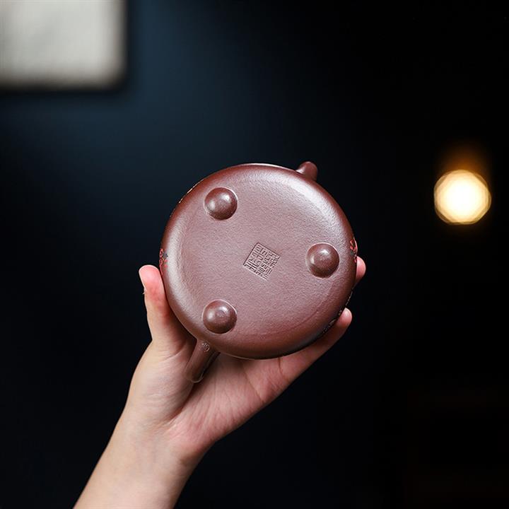 家藏紫血砂竹韵百福紫砂壺POT5553