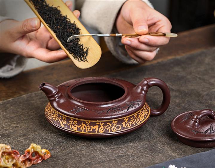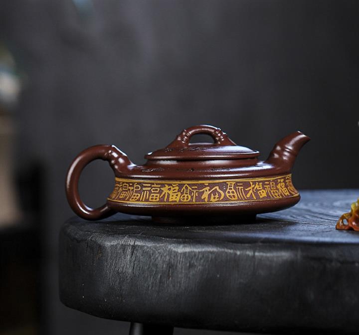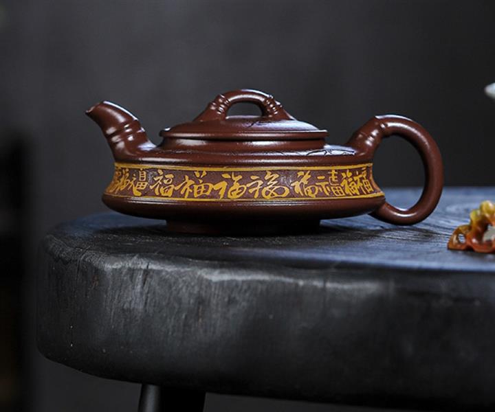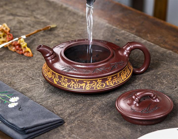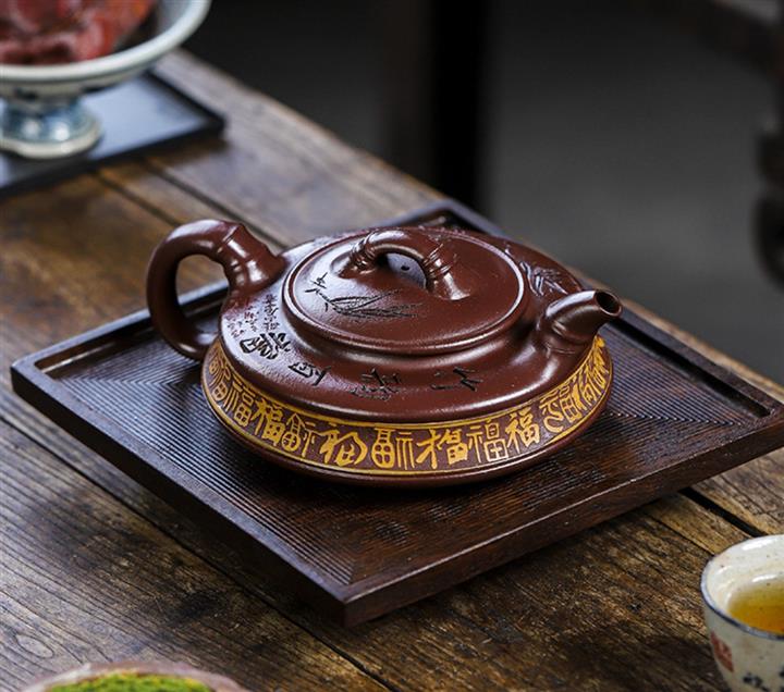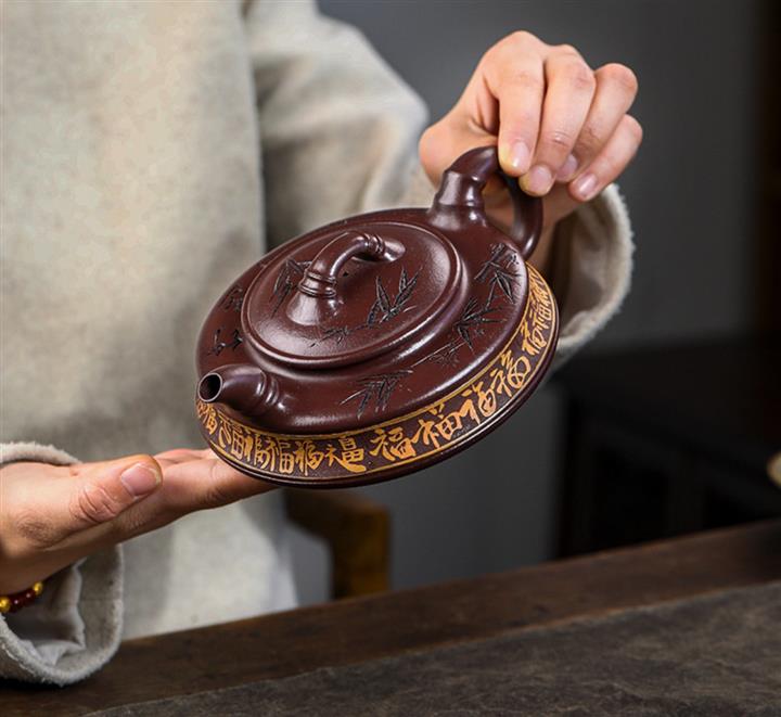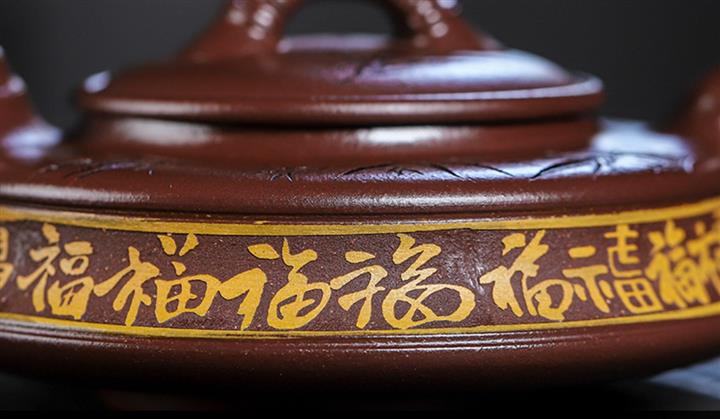 家藏紫血砂竹韵百福紫砂壺POT5553