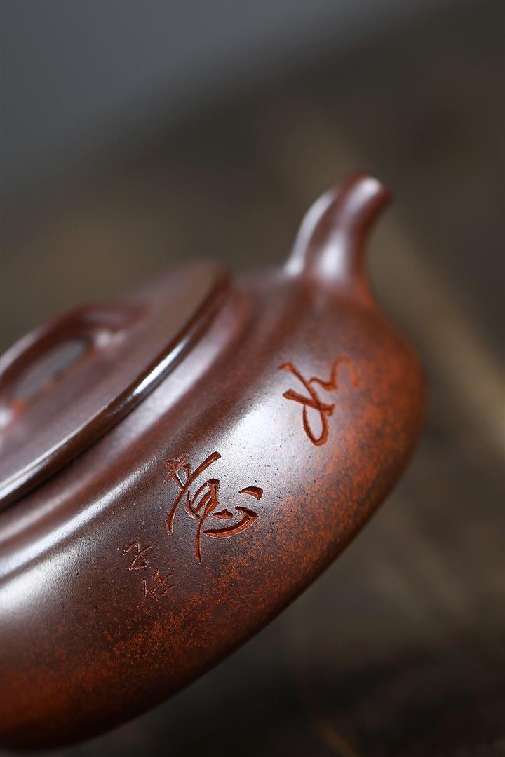 【作品介紹】此款壺形綫條流暢,壺把,壺嘴,壺身一氣呵成栩栩如生,是收藏把玩的好壺,泥料色澤古樸典雅,日久使用,漸露鋒芒,養成變化快,温潤莊重,用其泡茶,使用的年代久,壺身就温潤,泡出來的茶湯也就醇鬱芳馨。