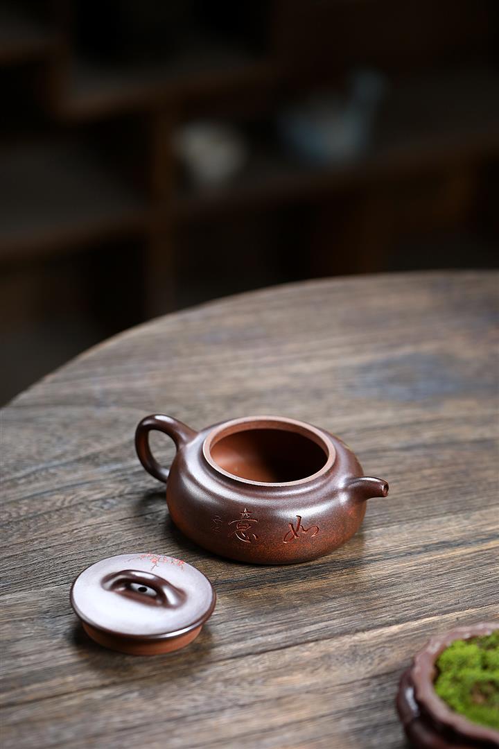 柴燒段泥玉環紫砂壺POT5570