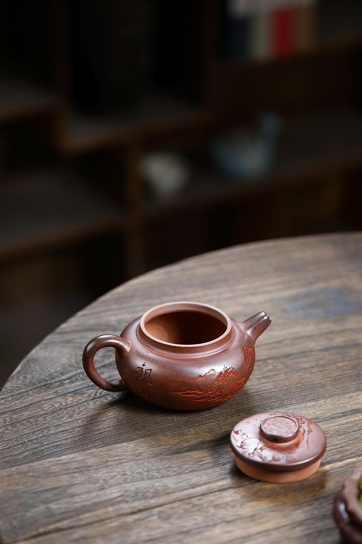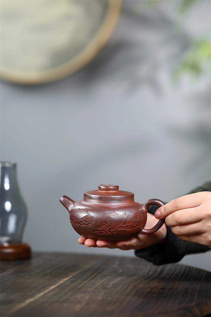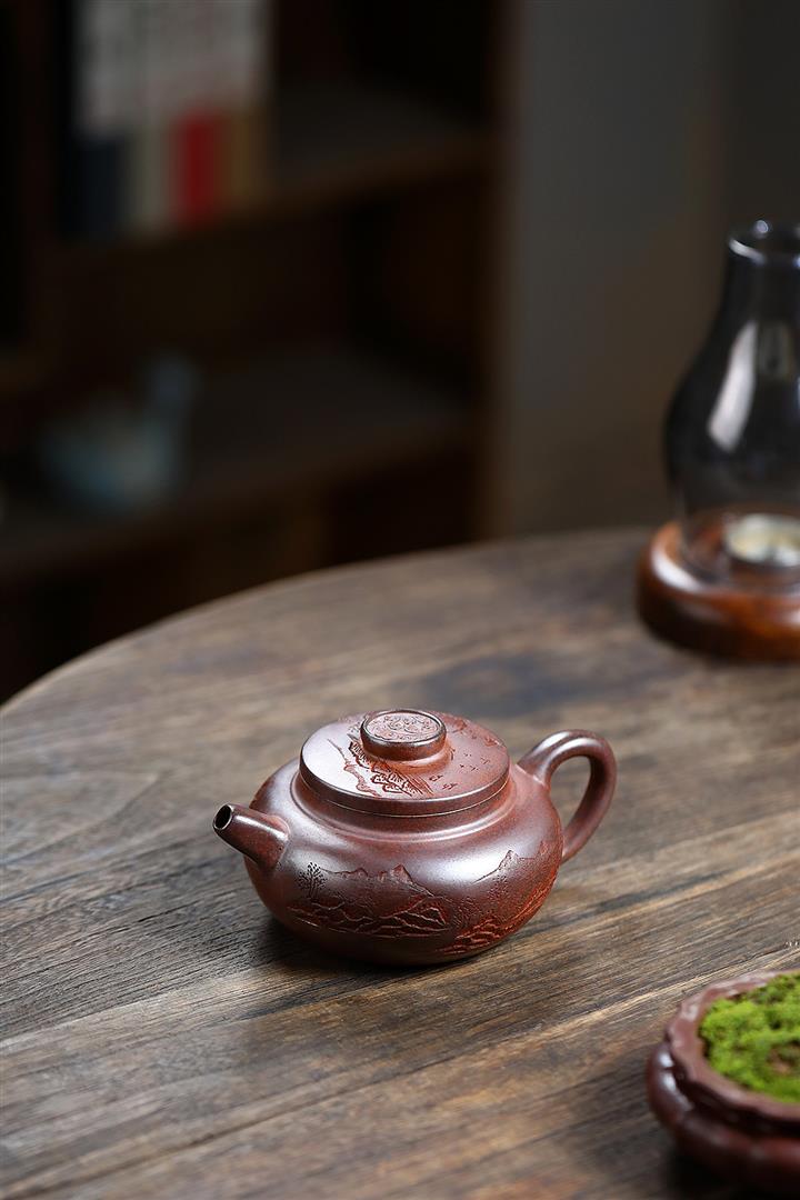 龍窑段泥柴燒圓珠關山紫砂壺POT5559