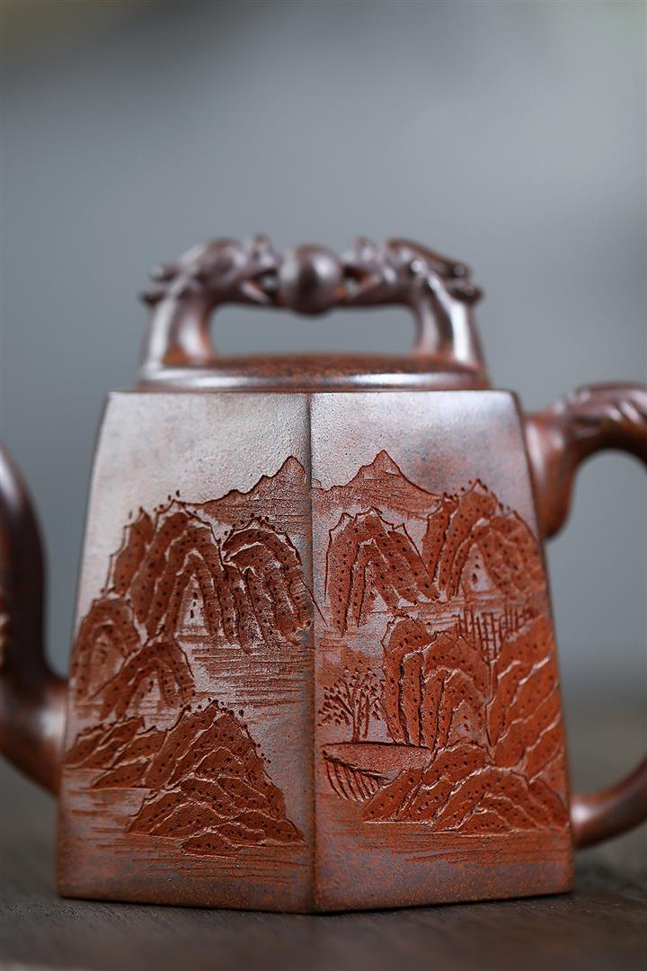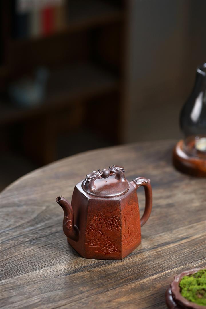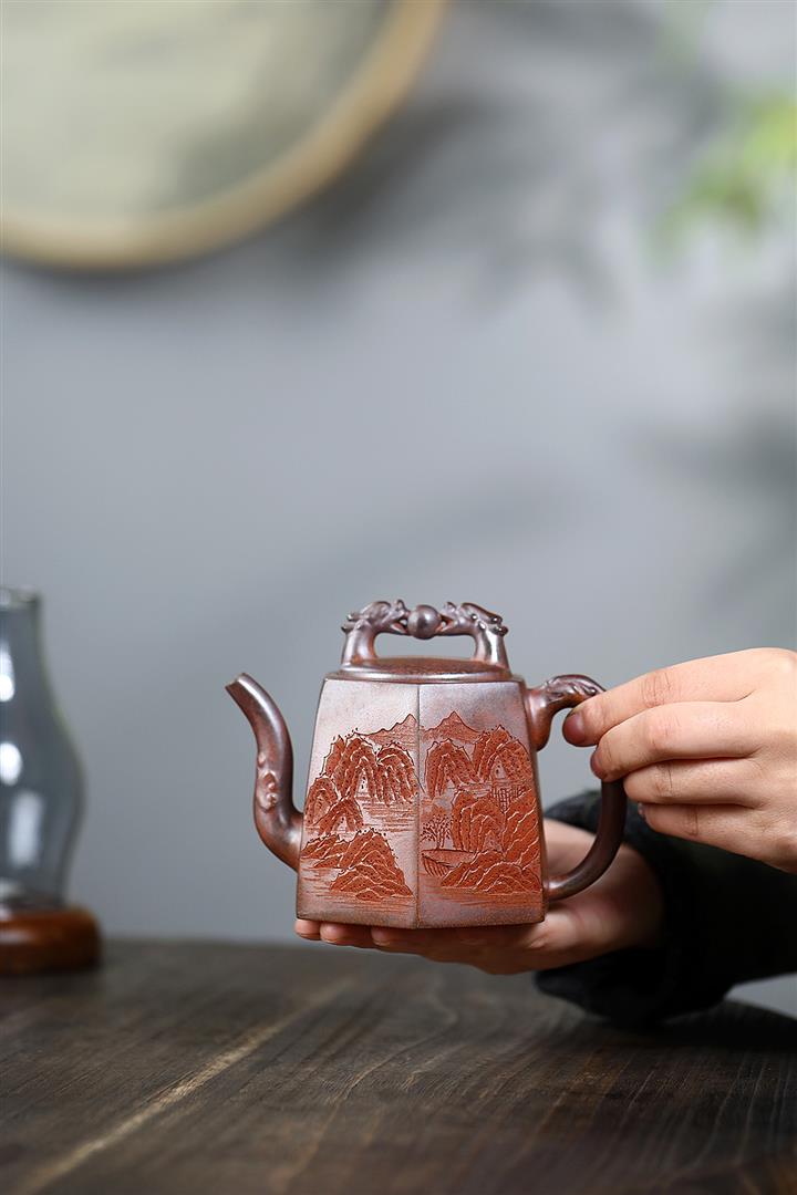 原礦龍血砂龍鳴秦權紫砂壺POT5566