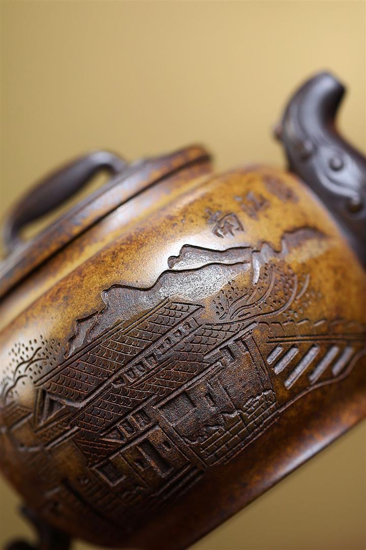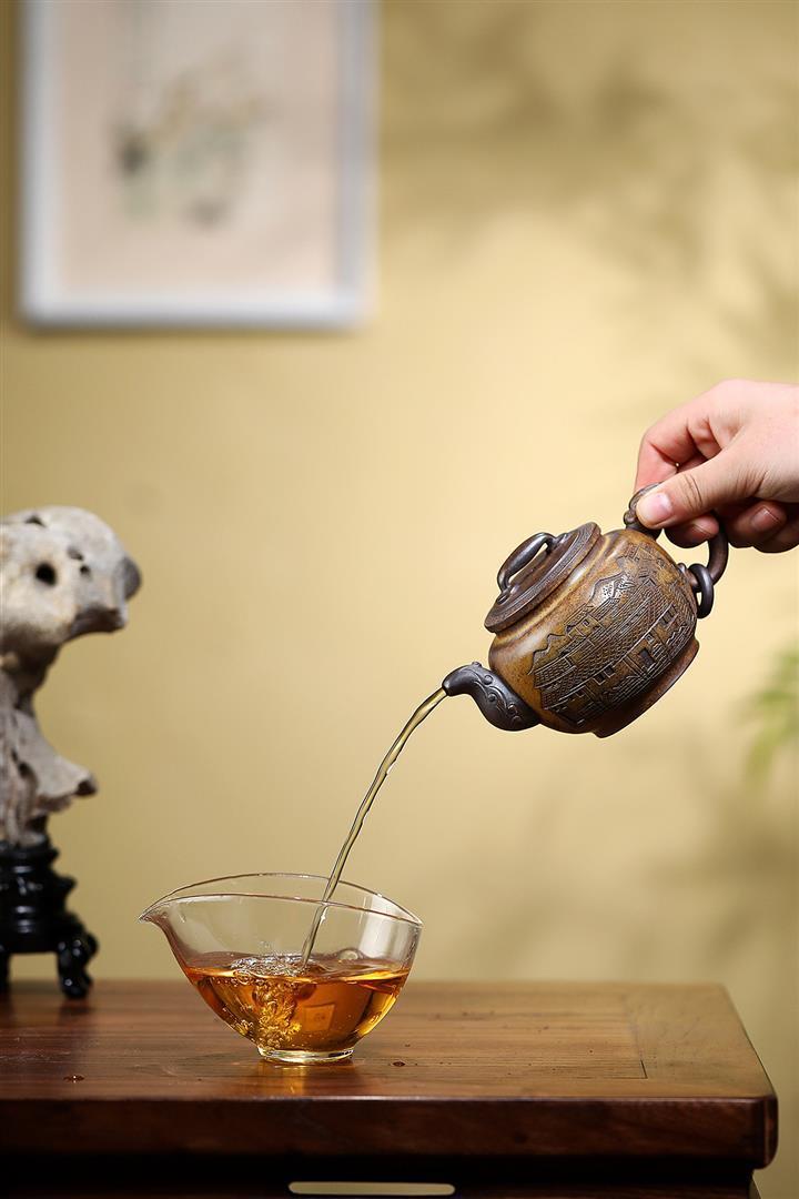 【作品介紹】此款壺形線條流暢,壺把,壺嘴,壺身一氣呵成栩栩如生,是收藏把玩的好壺,泥料色澤古樸典雅,日久使用,漸露鋒芒,養成變化快,溫潤莊重,用其泡茶,使用的年代久,壺身就溫潤,泡出來的茶湯也就醇郁芳馨。
