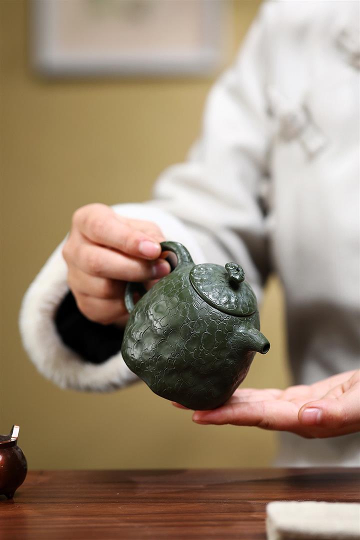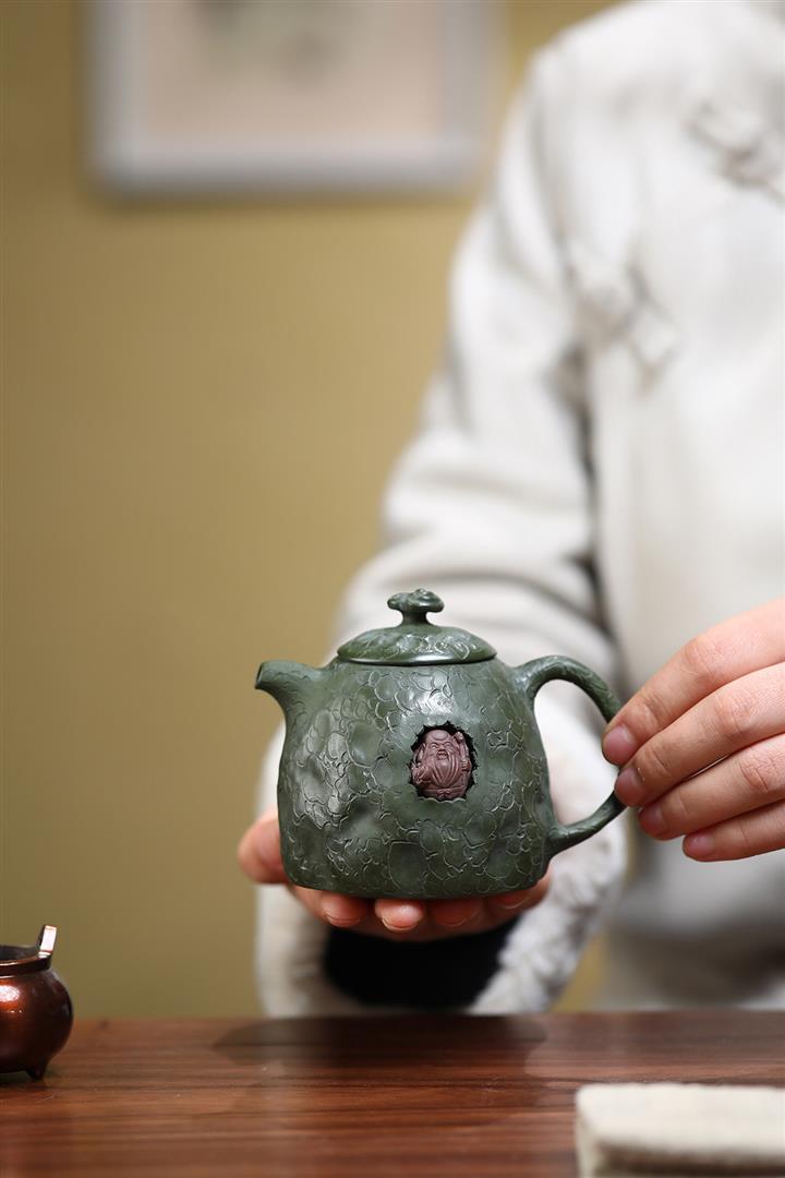 原礦綠泥壽星秦權紫砂壺POT5571
