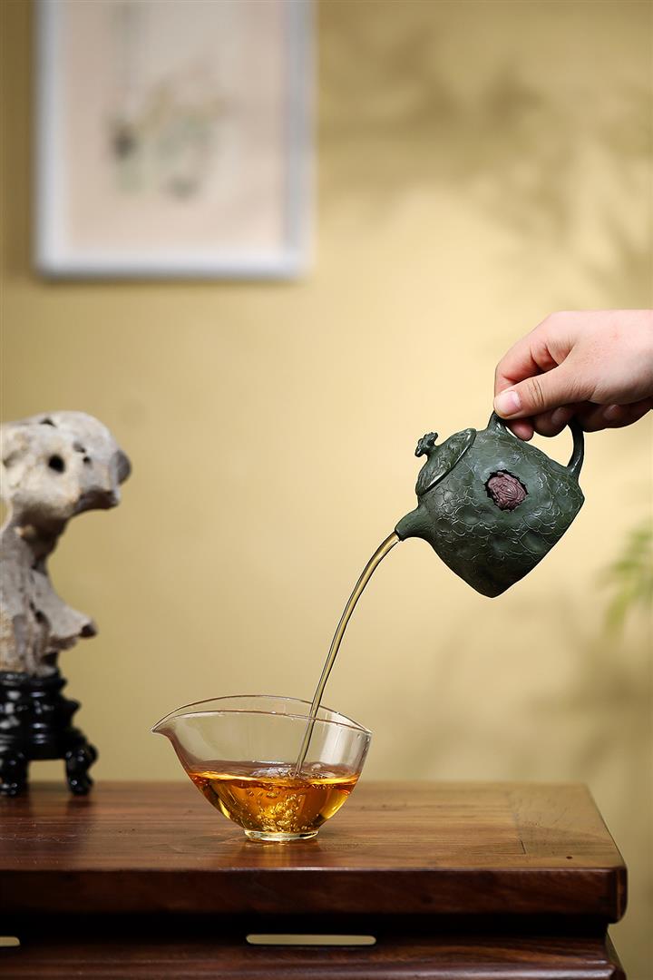 【作品介紹】此款壺形線條流暢,壺把,壺嘴,壺身一氣呵成栩栩如生,是收藏把玩的好壺,泥料色澤古樸典雅,日久使用,漸露鋒芒,養成變化快,溫潤莊重,用其泡茶,使用的年代久,壺身就溫潤,泡出來的茶湯也就醇郁芳馨。