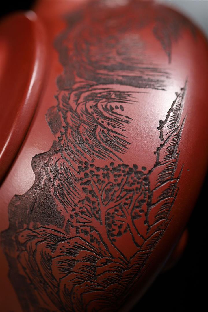 大紅袍柱礎紫砂壺POT5672