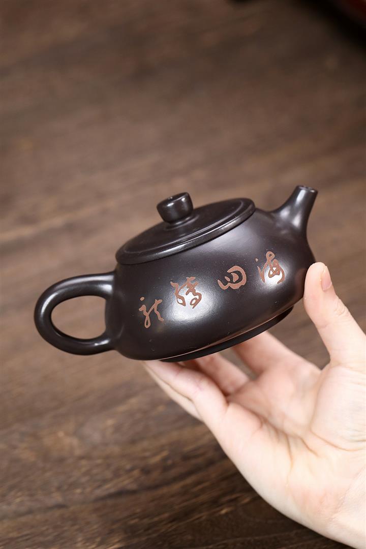 原礦黑泥平蓋石瓢紫砂壺POT5914