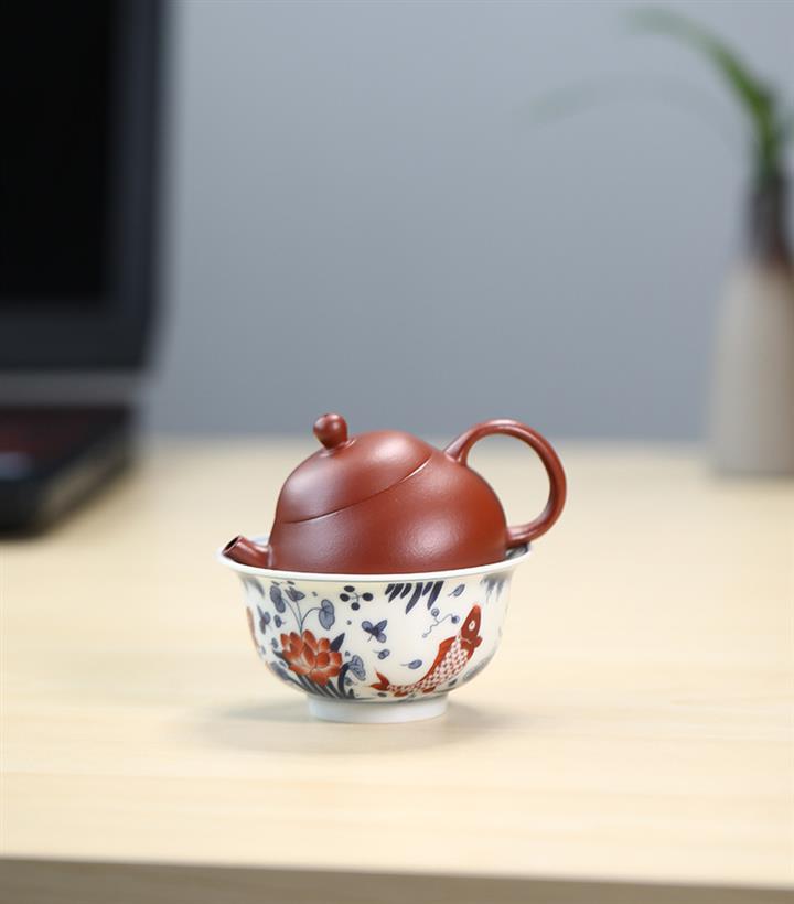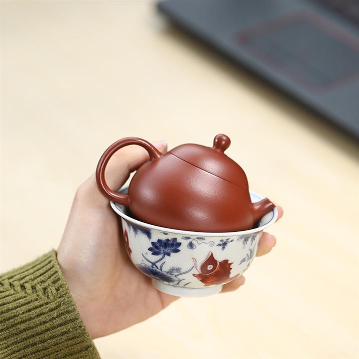 原礦朱泥薄胎小文旦紫砂壺POT5937