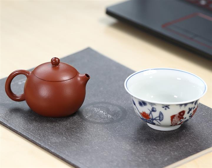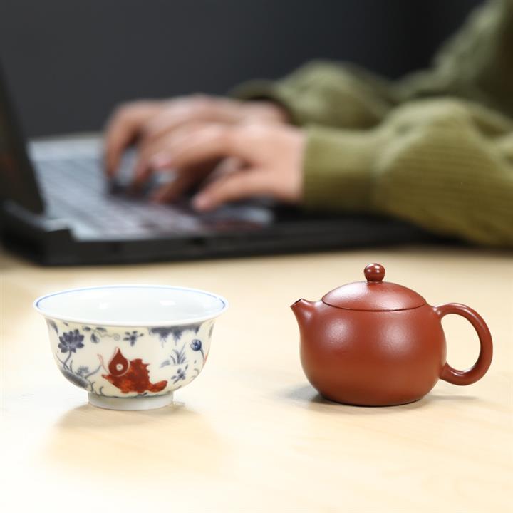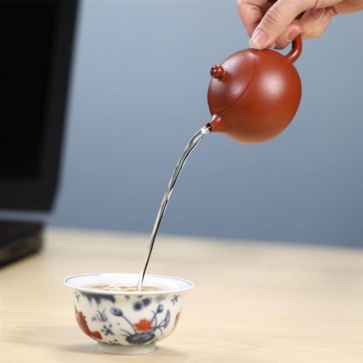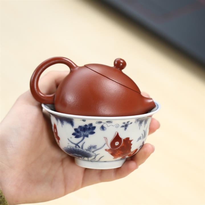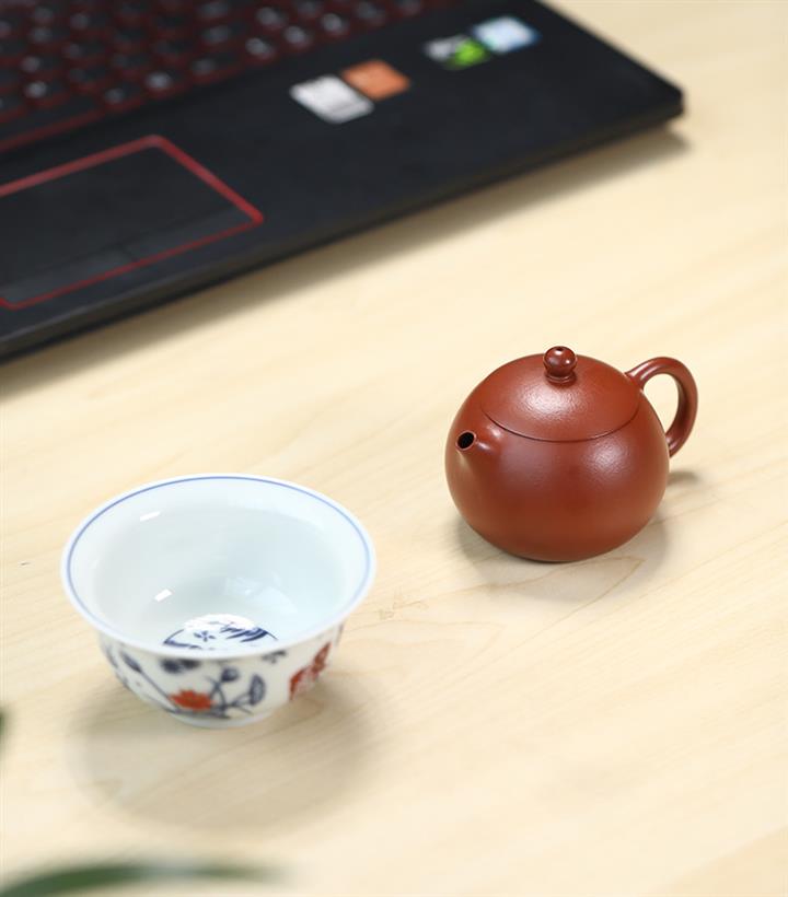 皺皮朱泥小扁櫻紫砂壺POT5940