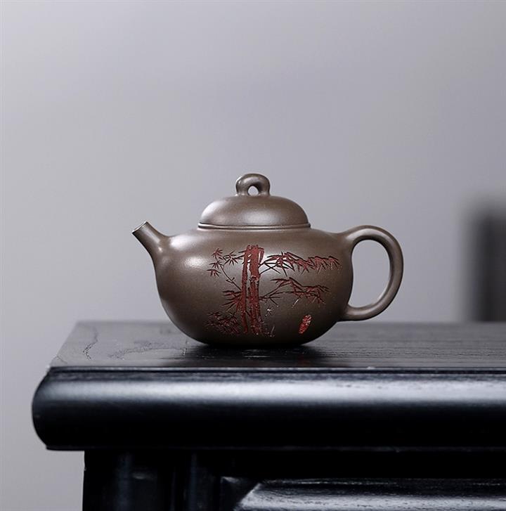 原礦青灰段翠竹紫砂壺POT5897