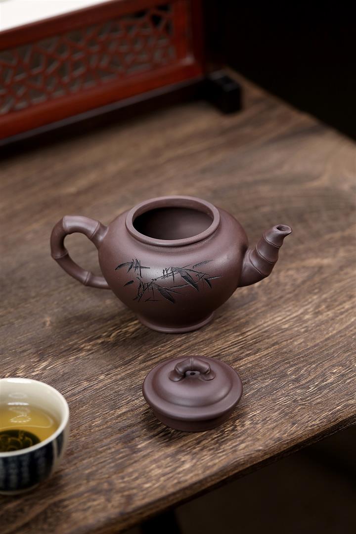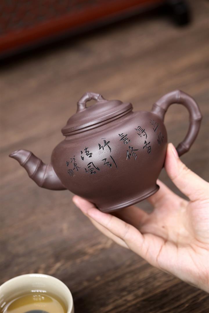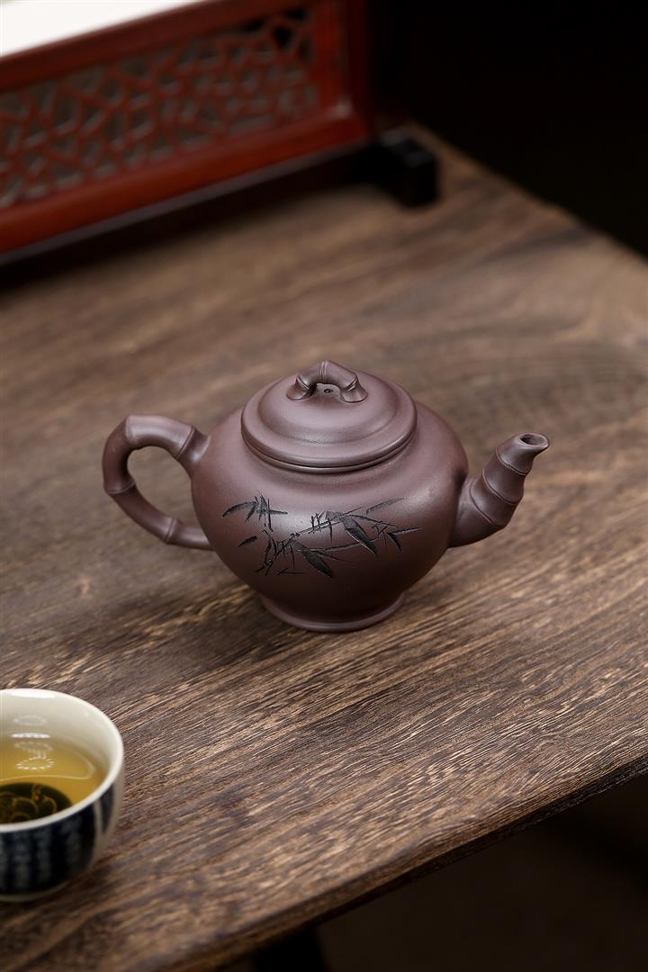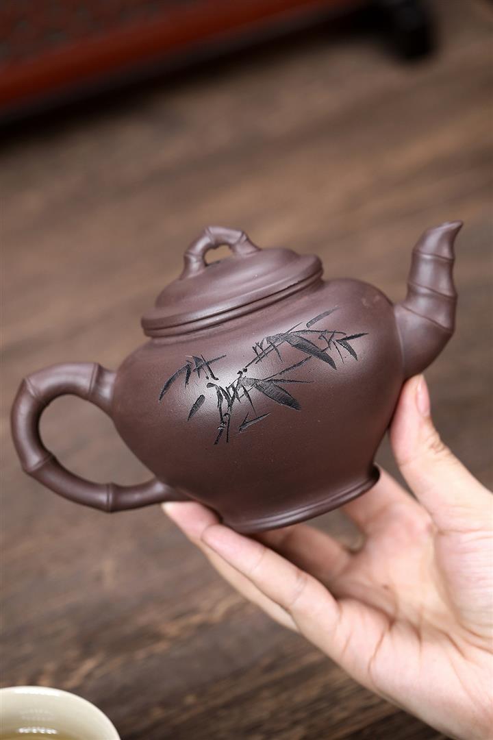 原礦青灰段翠竹紫砂壺POT5897