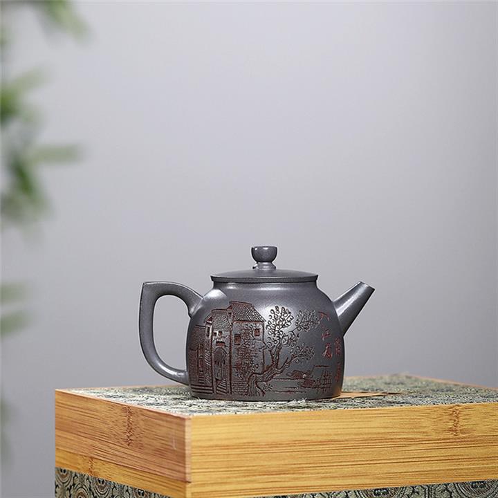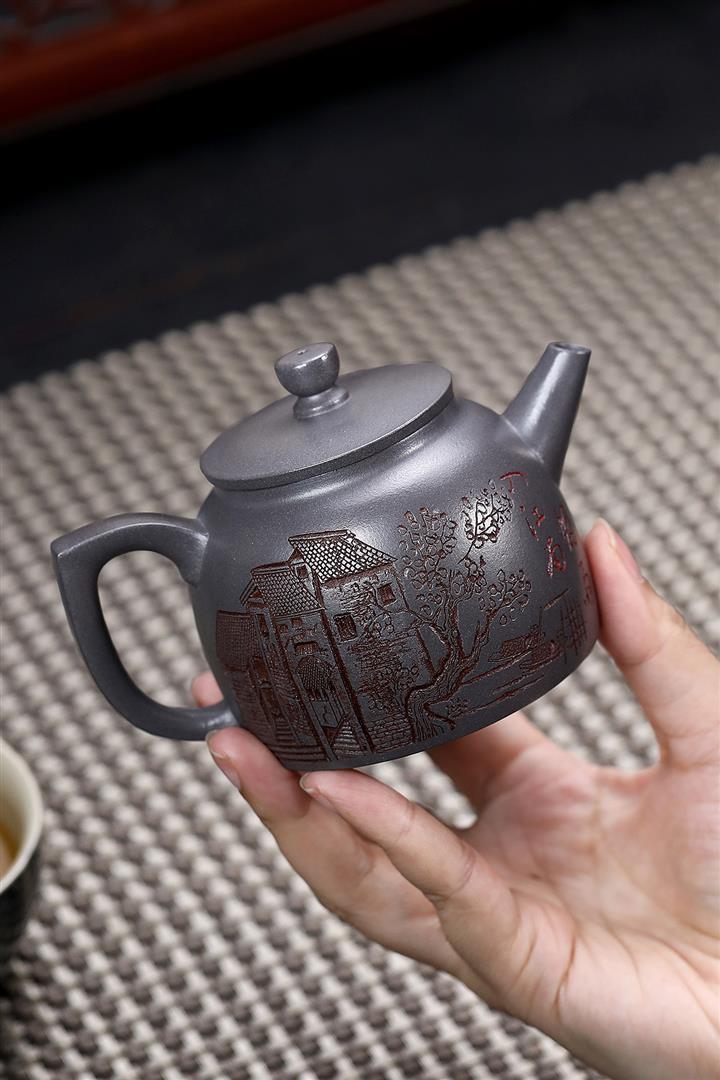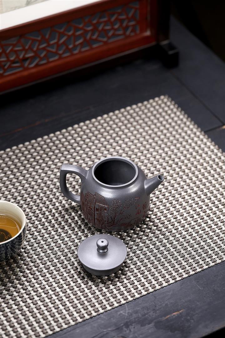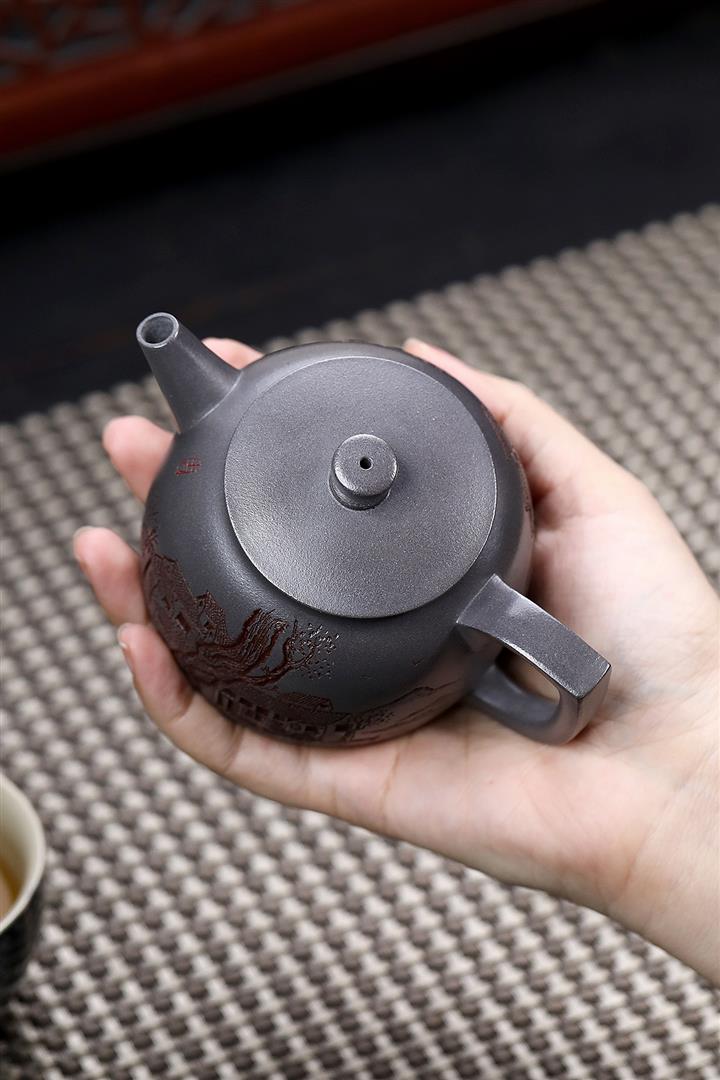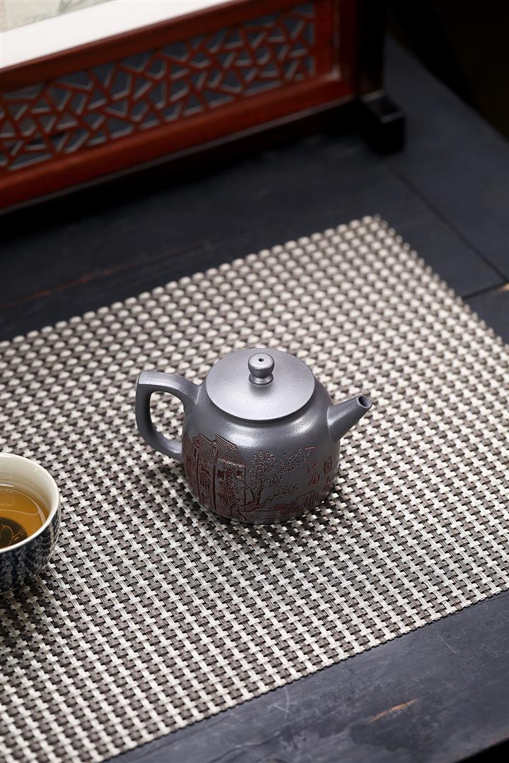 原礦高溫段泥柴燒雙線半月紫砂壺POT5962